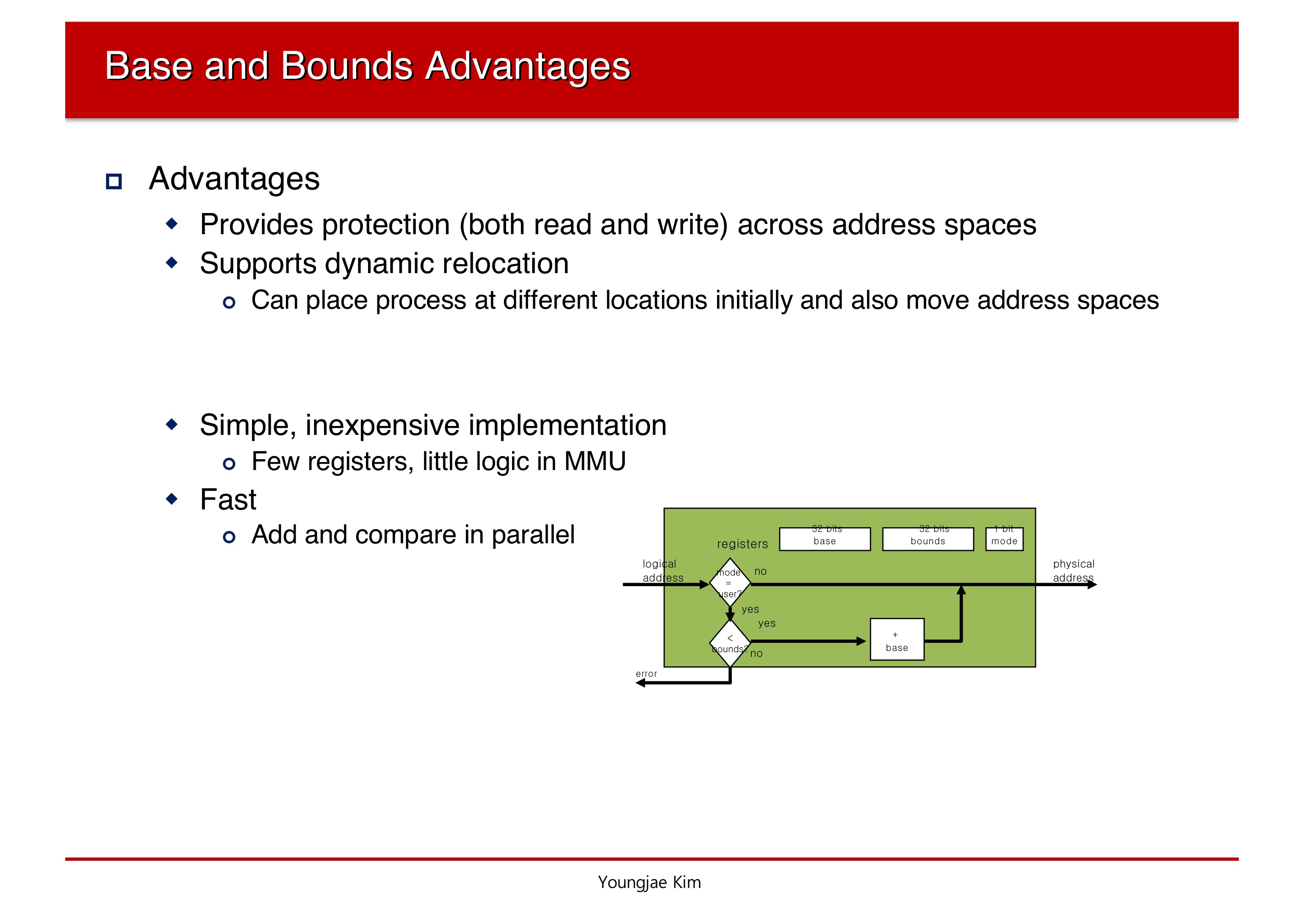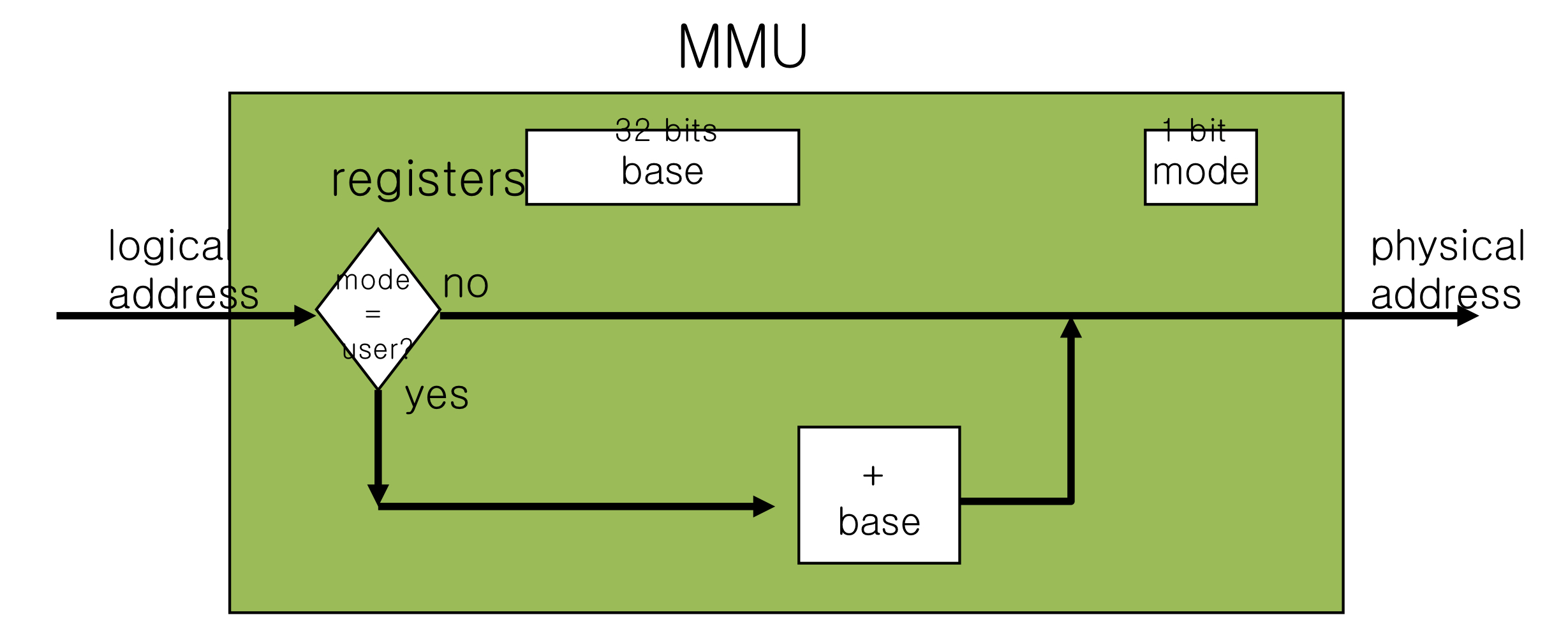 만약 조건을 만족한다면 logical address에 Base를 더하여 physical address로 만든다.
