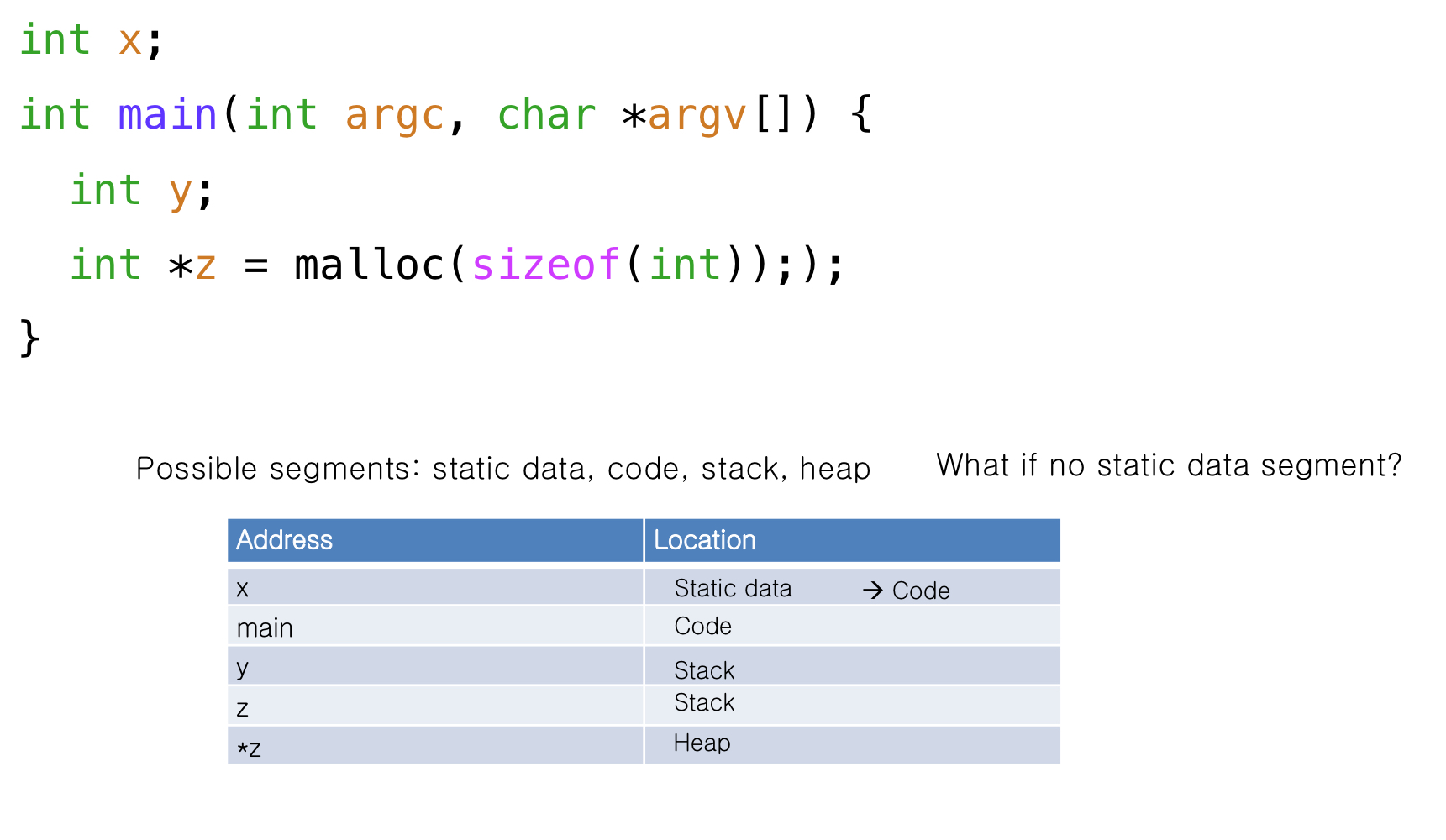 Address space는 static 그리고 dynamic components를 가지고 있다.
