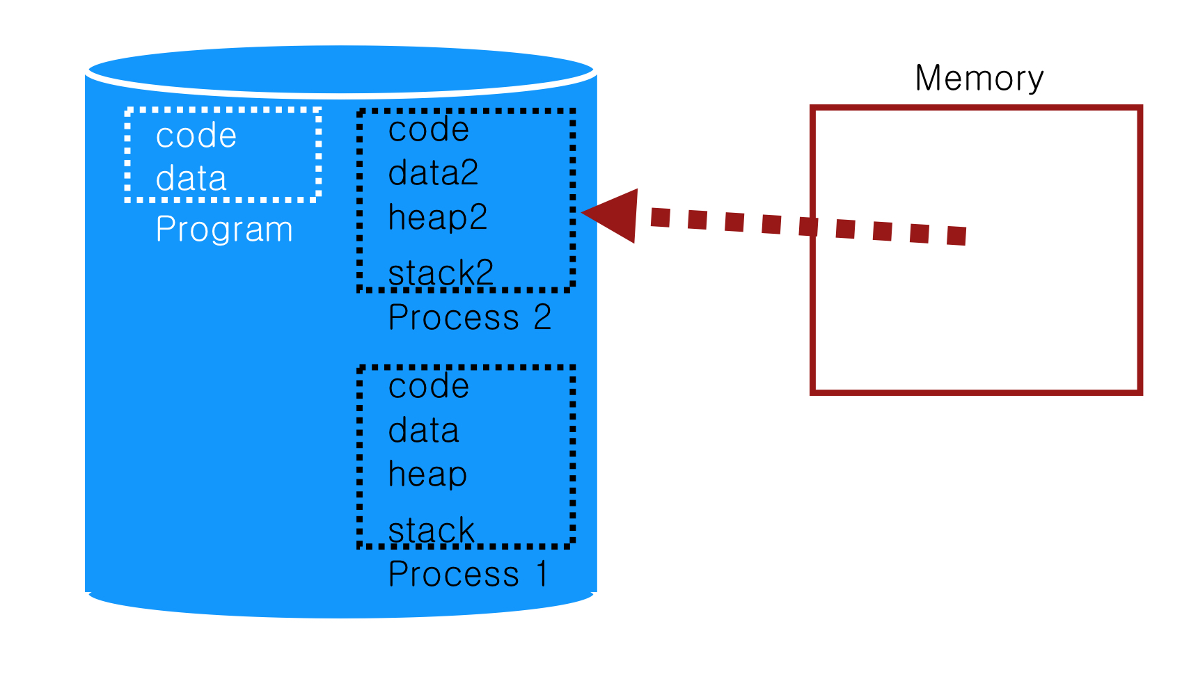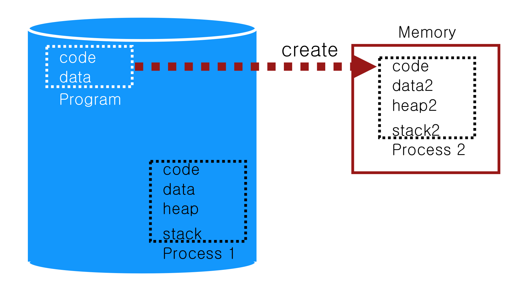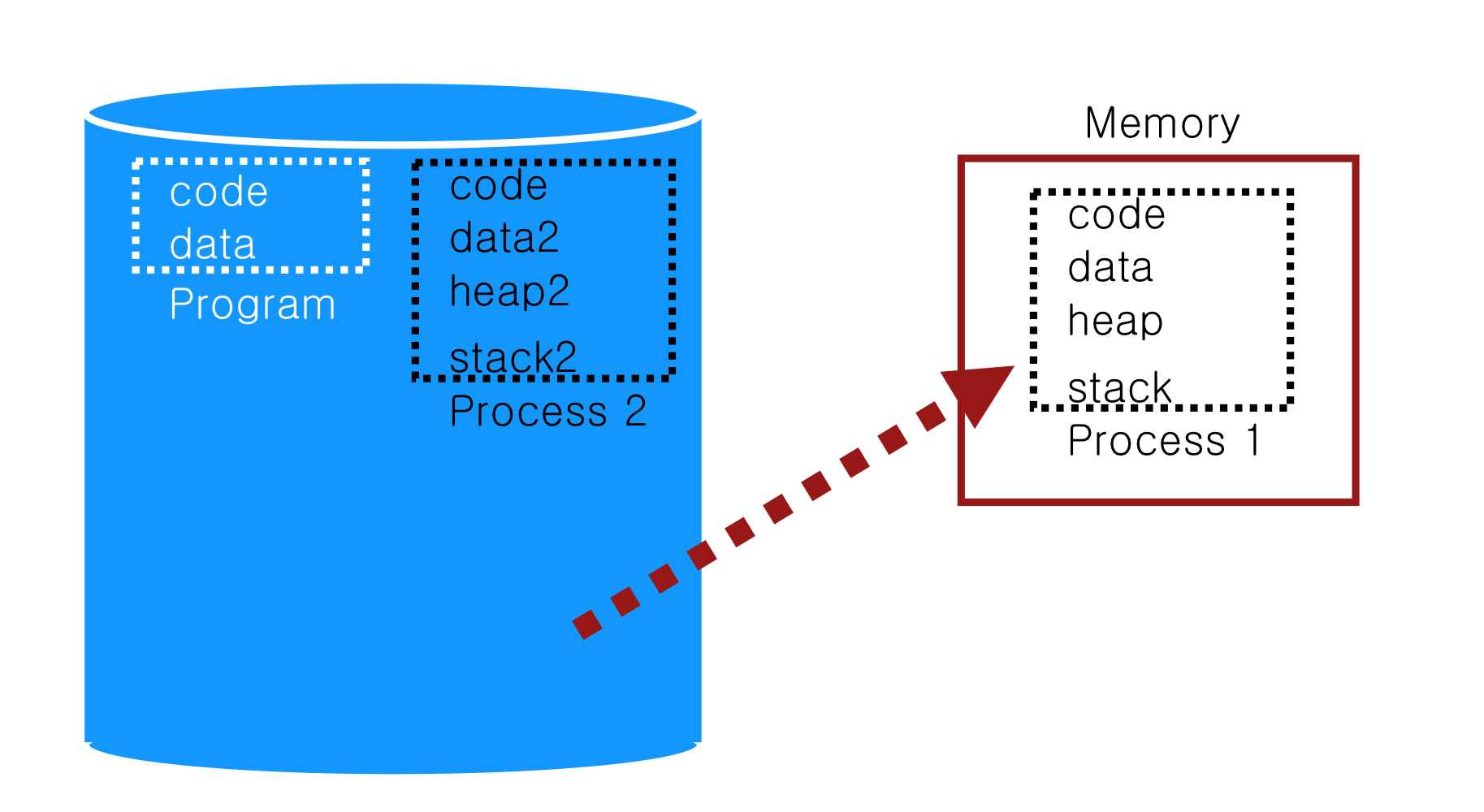 OS는 process가 일하지 않을 때, memory를 CPU register에 저장함으로써 많은 가상 CPU들을 제공한다.