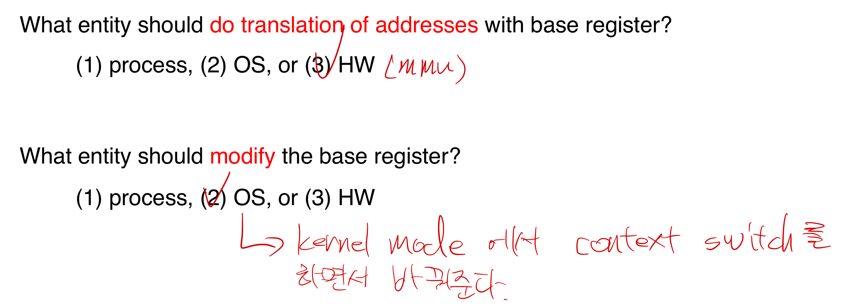 각각의 프로세스는 base register에 다른 value를 가지고 있다.