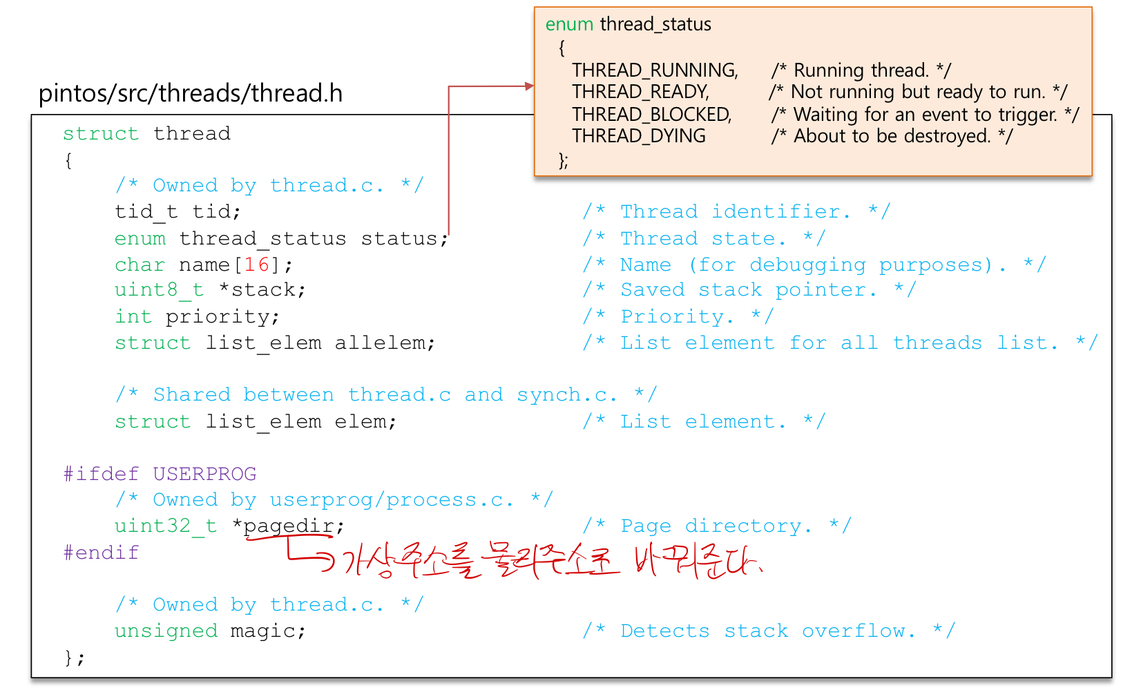 Process structure: struct thread