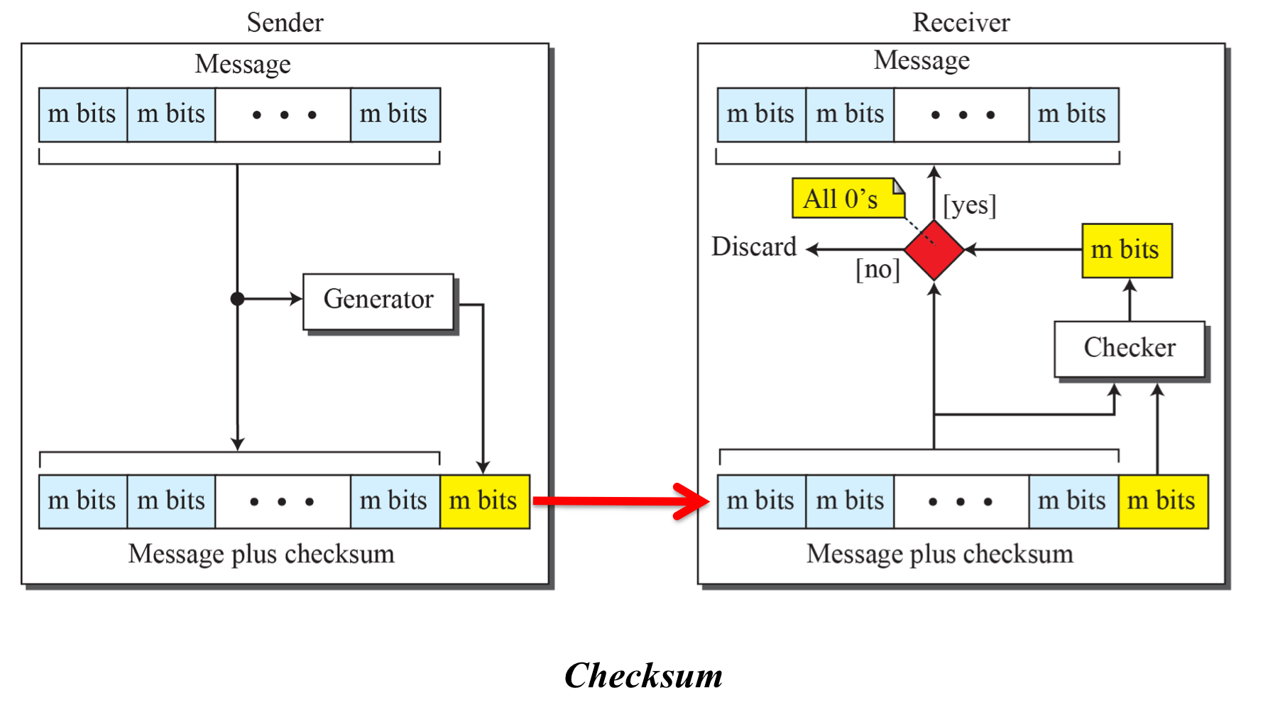인터넷에서, checksum 기술은 data-link layer보다는 주로 network 그리고 transport layer에서 사용된다.