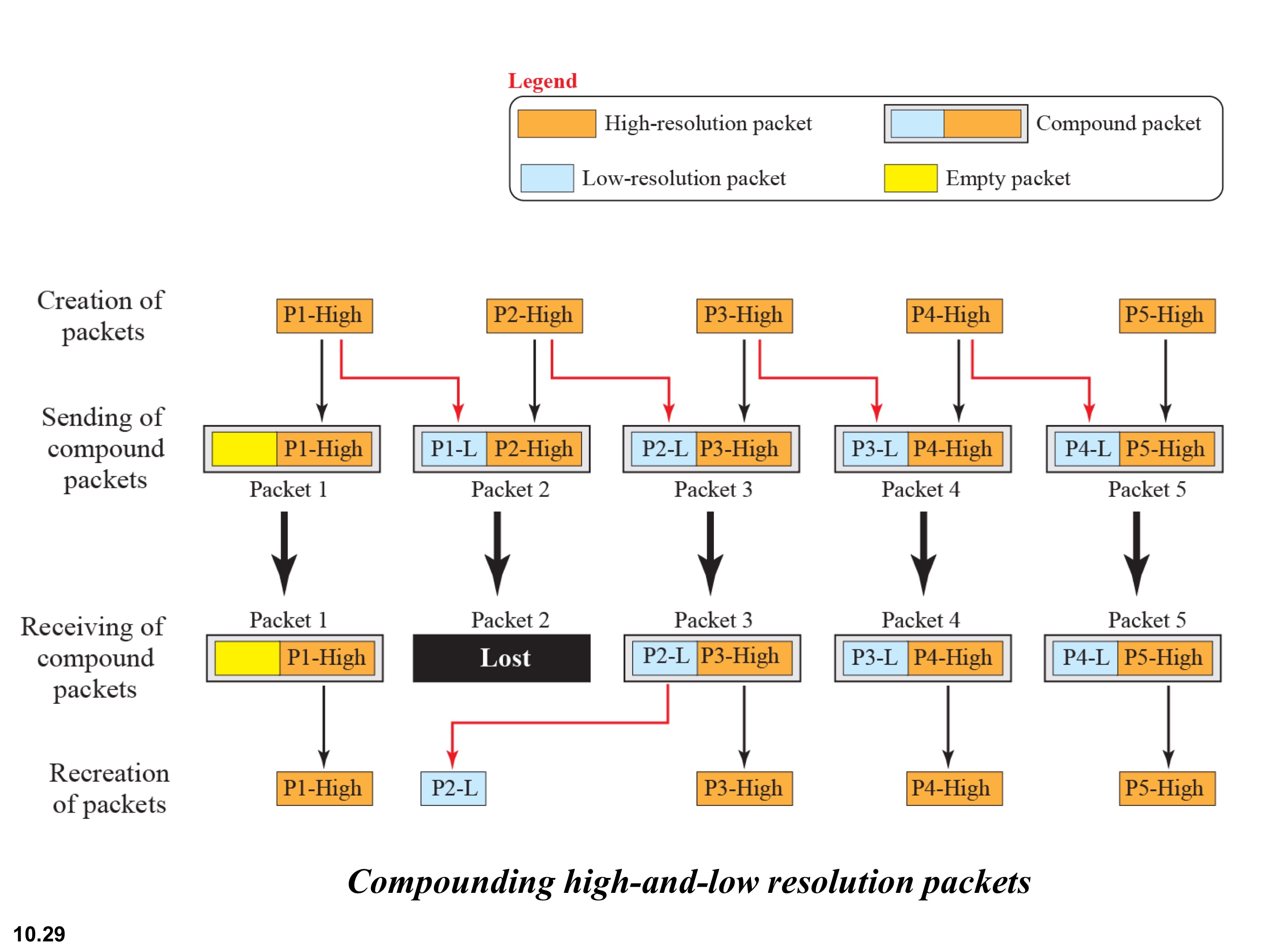 Compounding은 현재 packet에 이전 packet의 Low-resolution packet을 추가하여 보내는 것이다. 이렇게 하면 packet하나가 손실 되더라도 다음 packet에 손실된 packet의 Low-resolution이 있기 때문에 완벽하진 않지만 어느정도 복구가 가능하다.