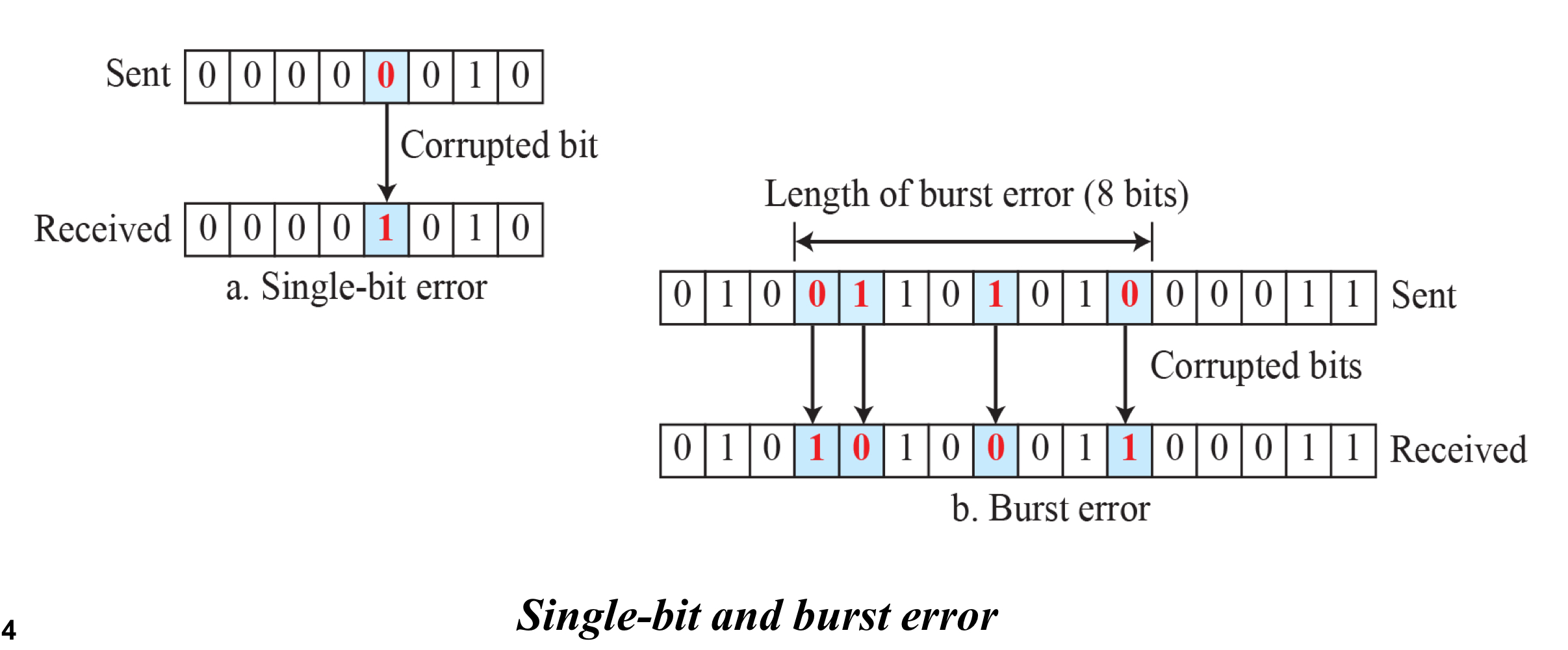 single-bit error는 주어진 bits에서 한 개의 bit만 바뀐 것을 의미한다.