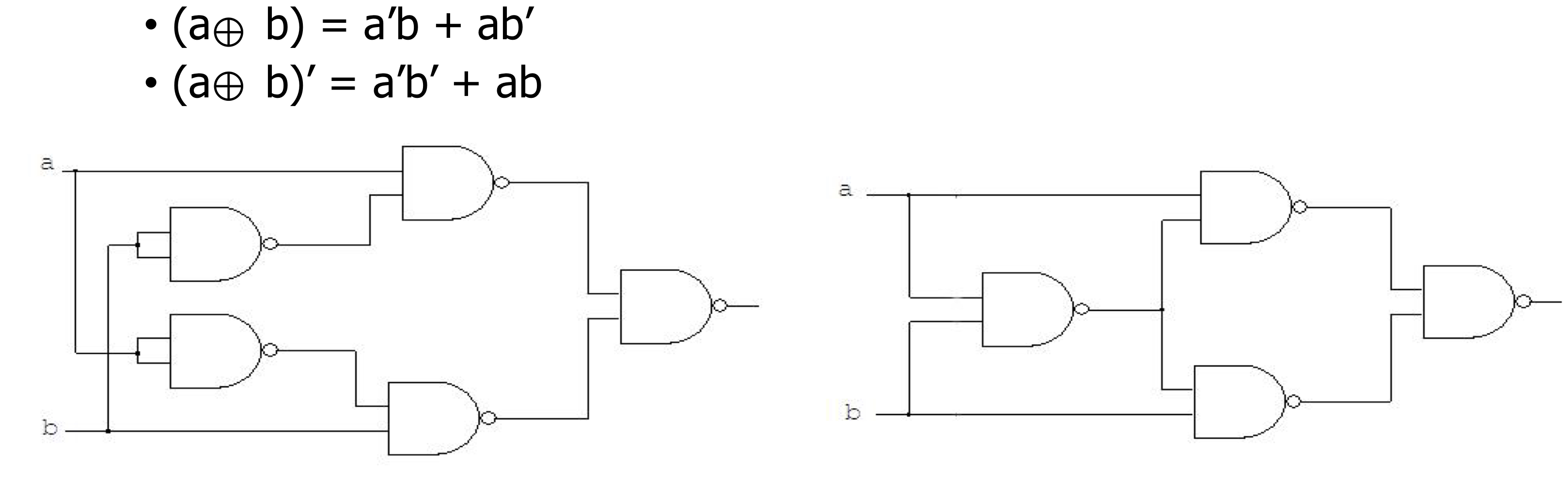 (a⨁b)=a'b+ab' , (a⨁b)'=a'b'+ab 로 표현할 수 있다. 따라서 위와 같은 논리회로로 표현할 수 있다.