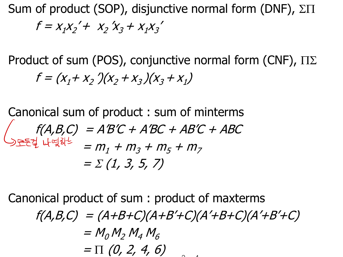 SOP가 위와 같을 때 canonical SOP가 위와 같이 나오는 이유는 SOP에서 정해진 것이 아니라면 나머지는 아무거나 와도 상관없기 때문이다. 예를 들어 BD가 SOP 에서 주어졌을 때, canonical SOP에서는 A'BC'D, A'BCD, ABC'D, ABCD를 모두 표현해 주어야 한다.