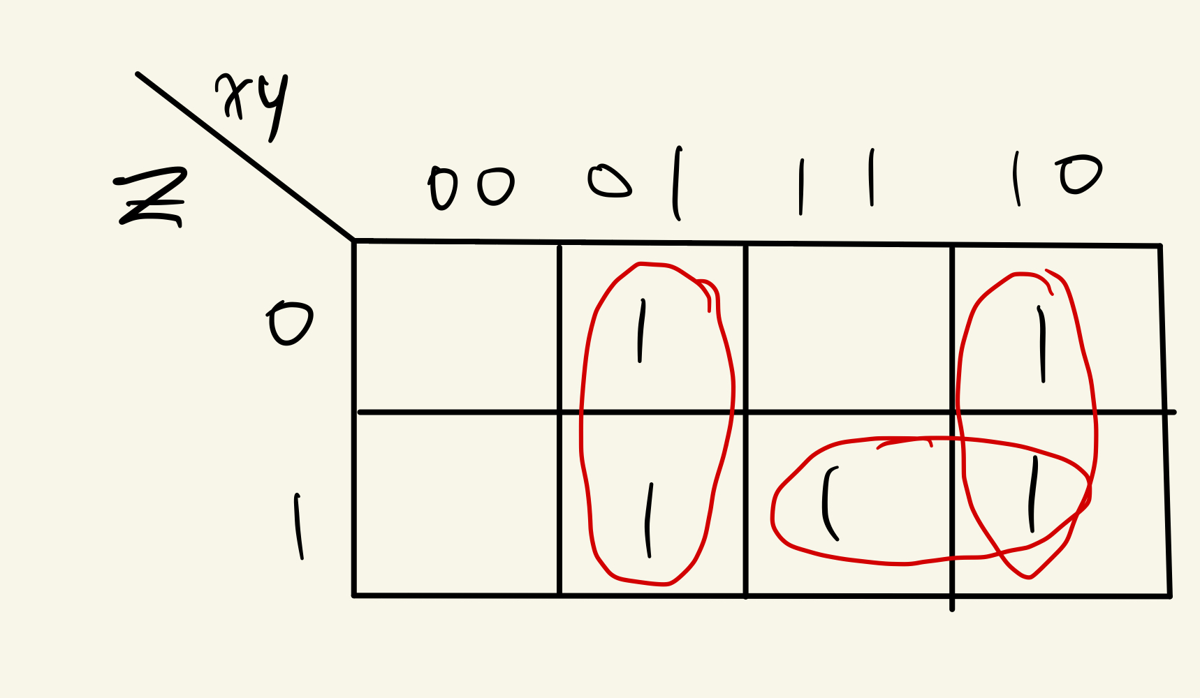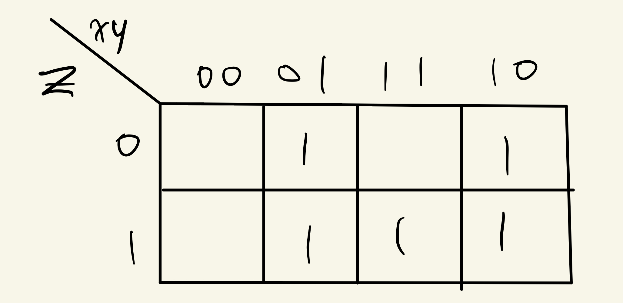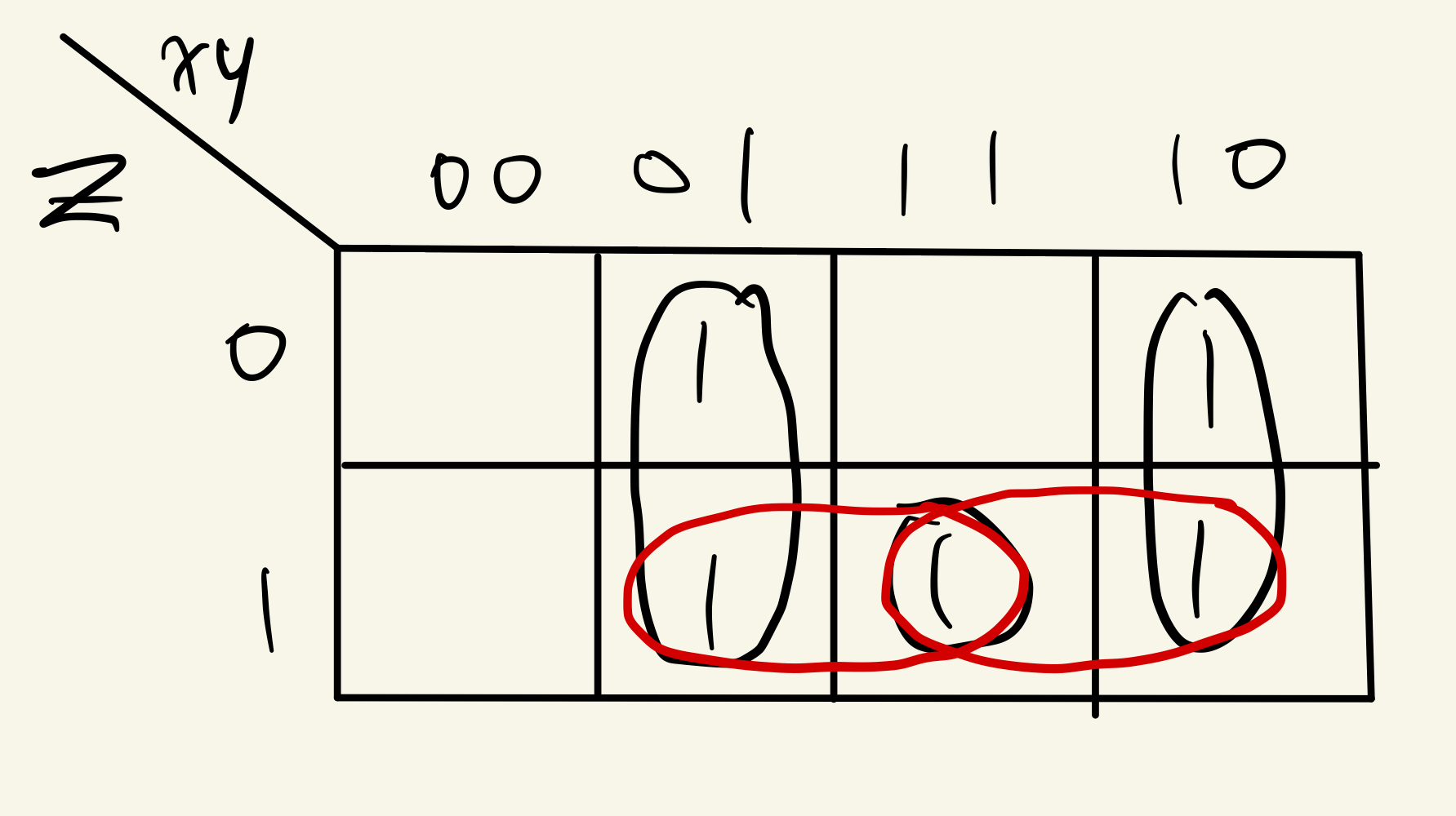 Example에 식을 Karnaugh Map에 Mapping시키면 위와 같다.