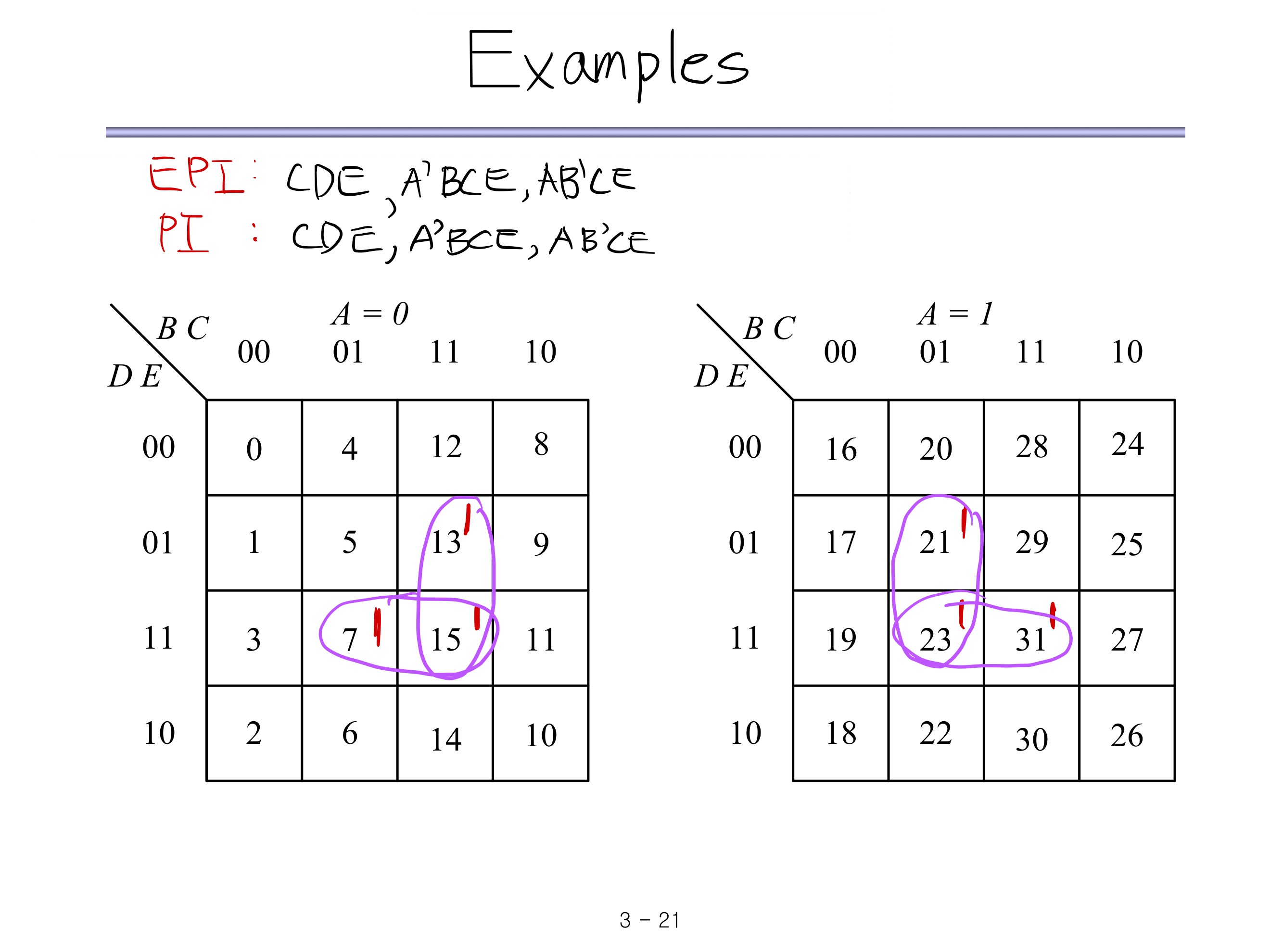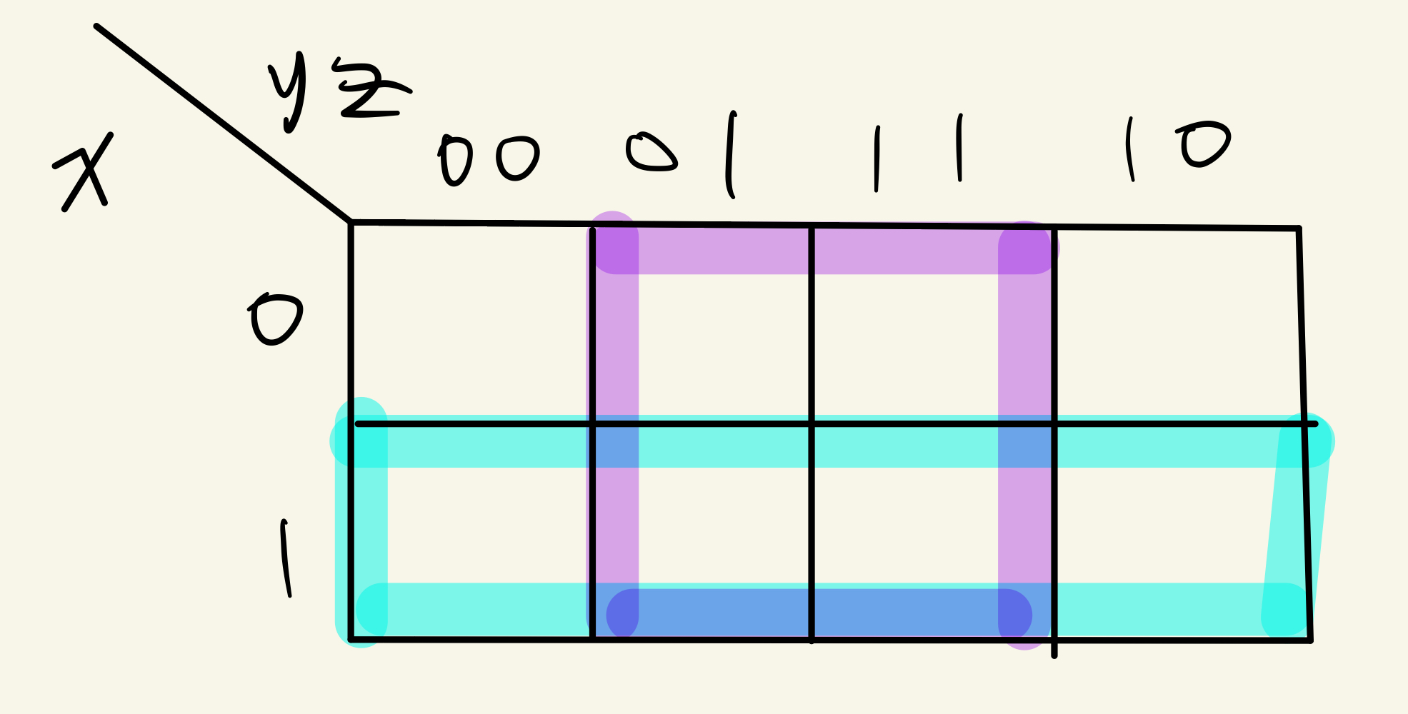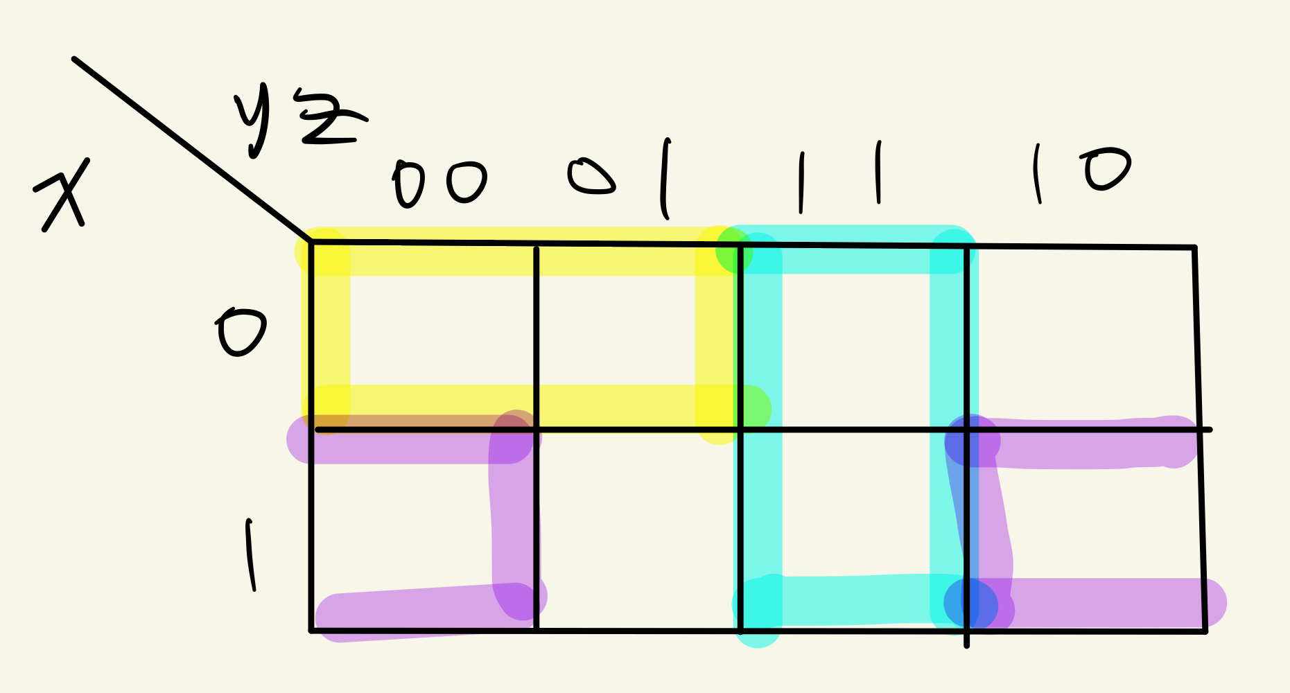 Example에 식을 Karnaugh Map에 Mapping시키면 위와 같다.