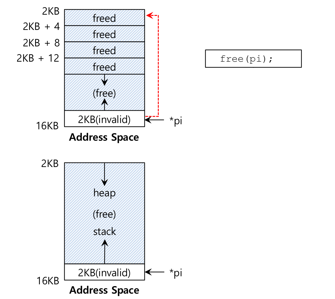 free된 memory를 다시 free하거나 allocate 되지 않은 memory를 free하면 문제가 발생할 수 있다.