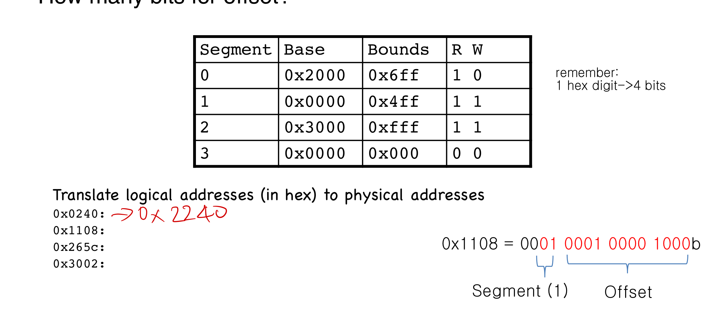 각각의 segment는 그들만의 base and bound, protection bits를 가지고 있다.