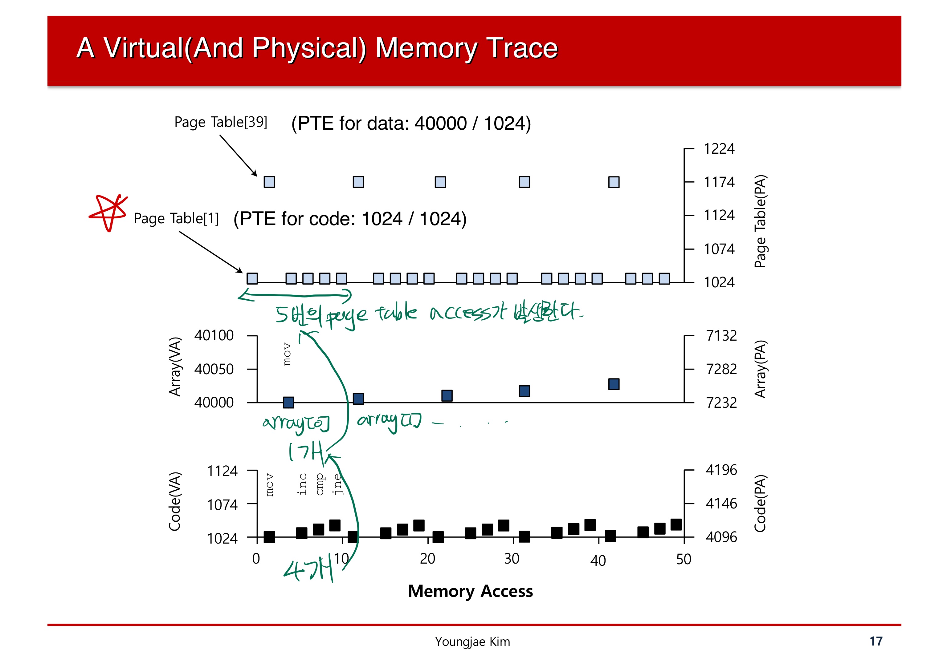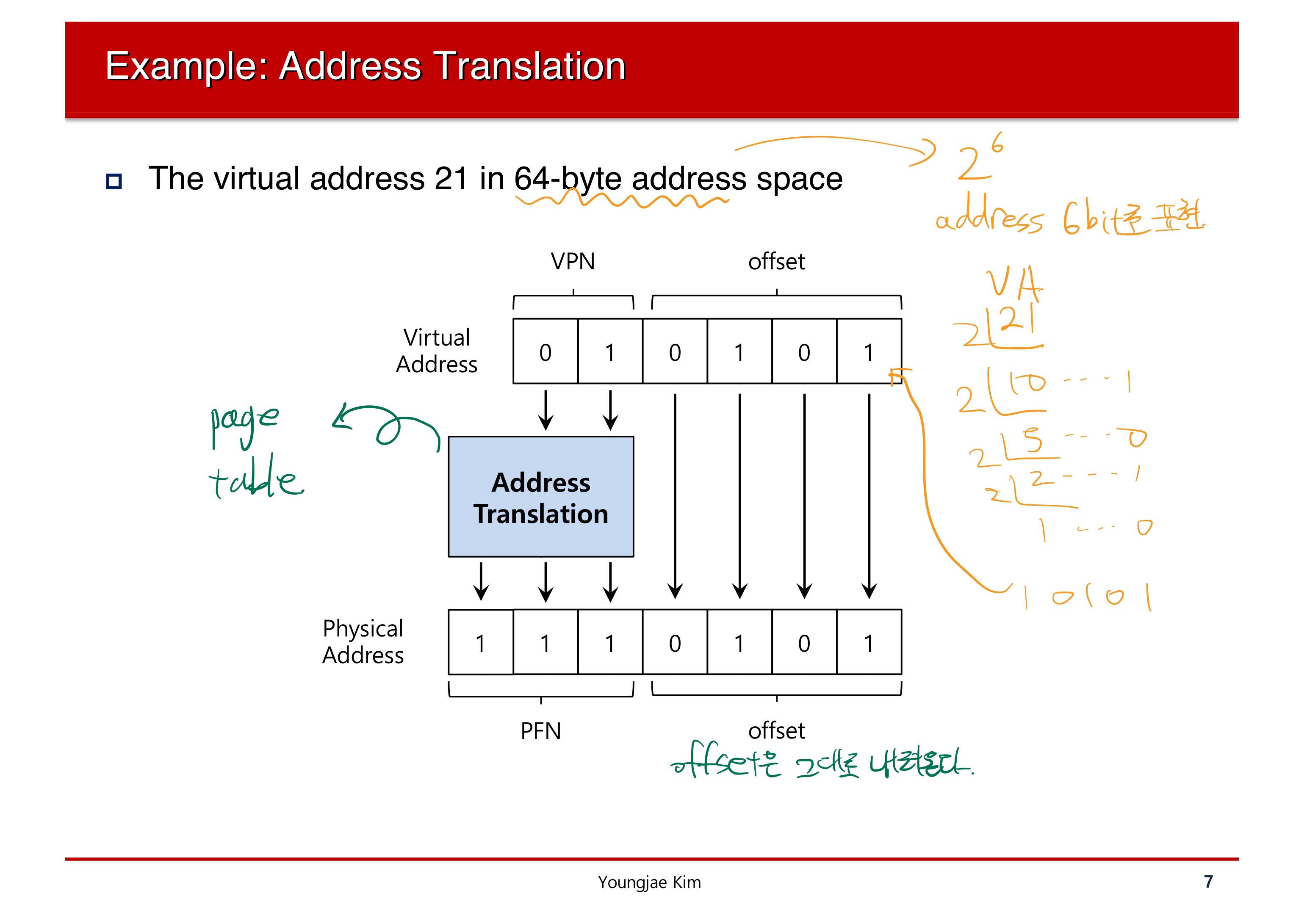Process 마다 있는 page table은 virtual address를 physical address로 변환할 줄 알아야한다.