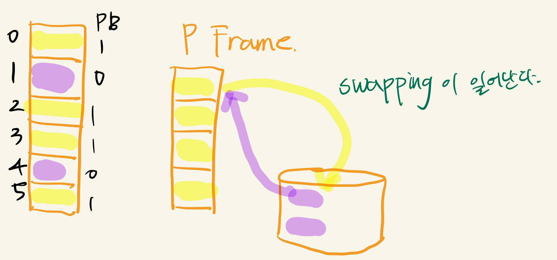 Page에 비해 Frame이 부족할 경우 해당 data를 disk에 저장하게 된다. 이를 구별하기 위해 present bit가 있다.