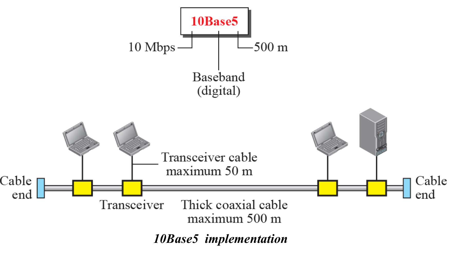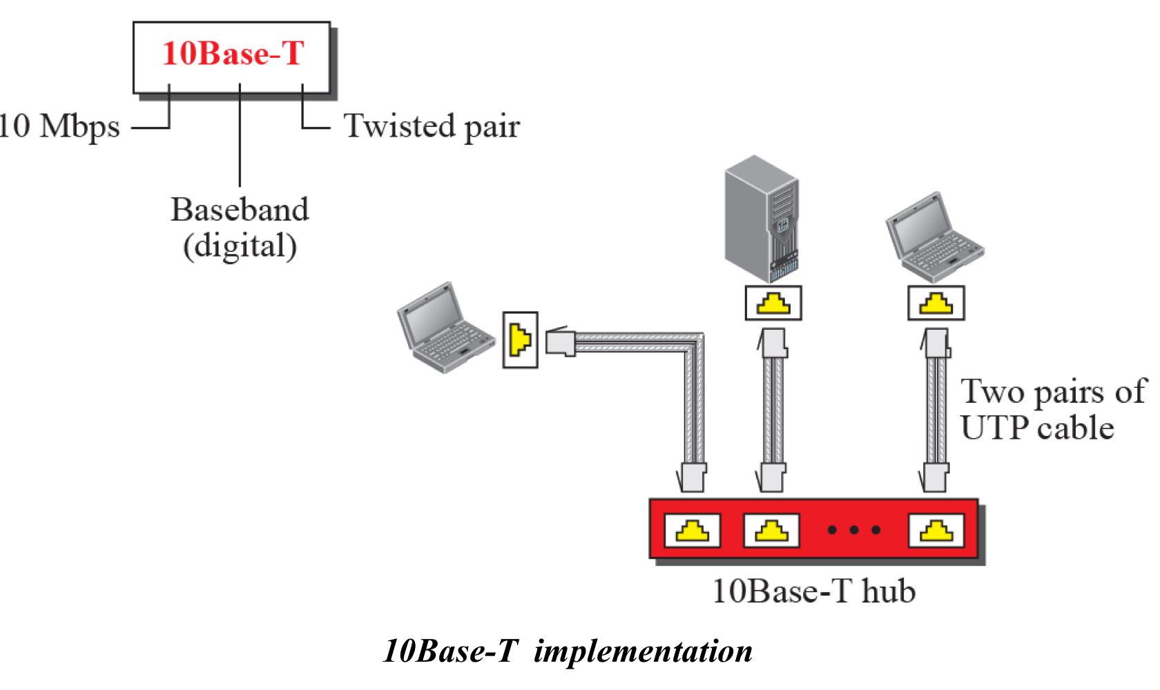 각각의 Implementation들의 이름이 무엇을 뜻하는지 위를 보면 알 수 있다. 앞에는 transmission rate를 나타내고 뒤에는 cable의 속성을 나타낸다.
