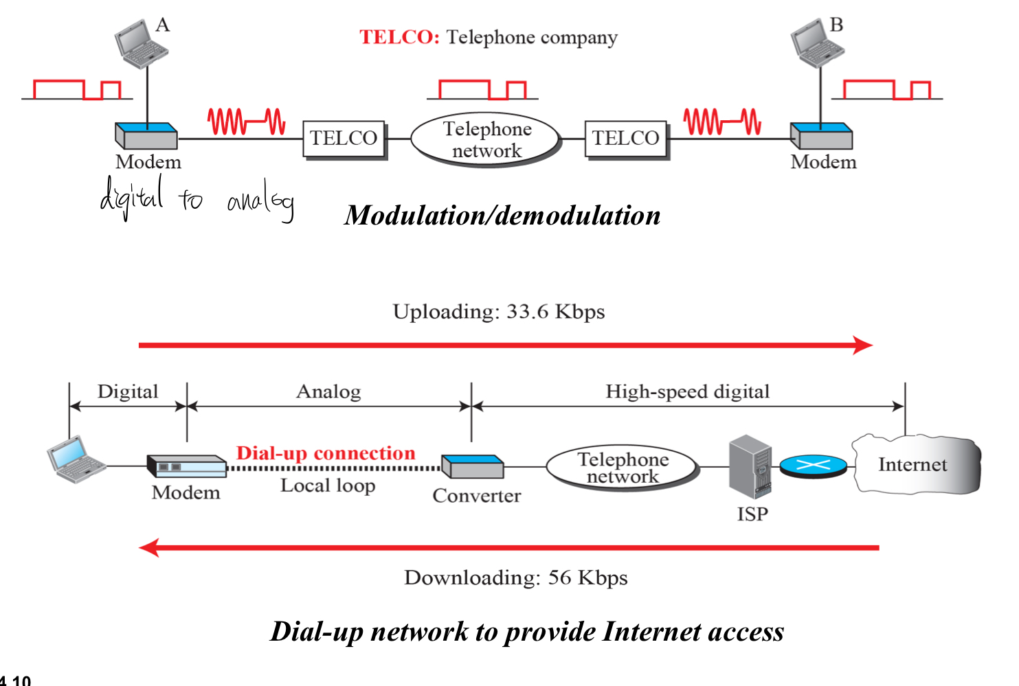 modem이 한계에 부딪쳤을 때, telephone company는 Internet access에 더 빠르게 접근하기 위해 DSL(Digital Subscriber Line)을 만들었다.