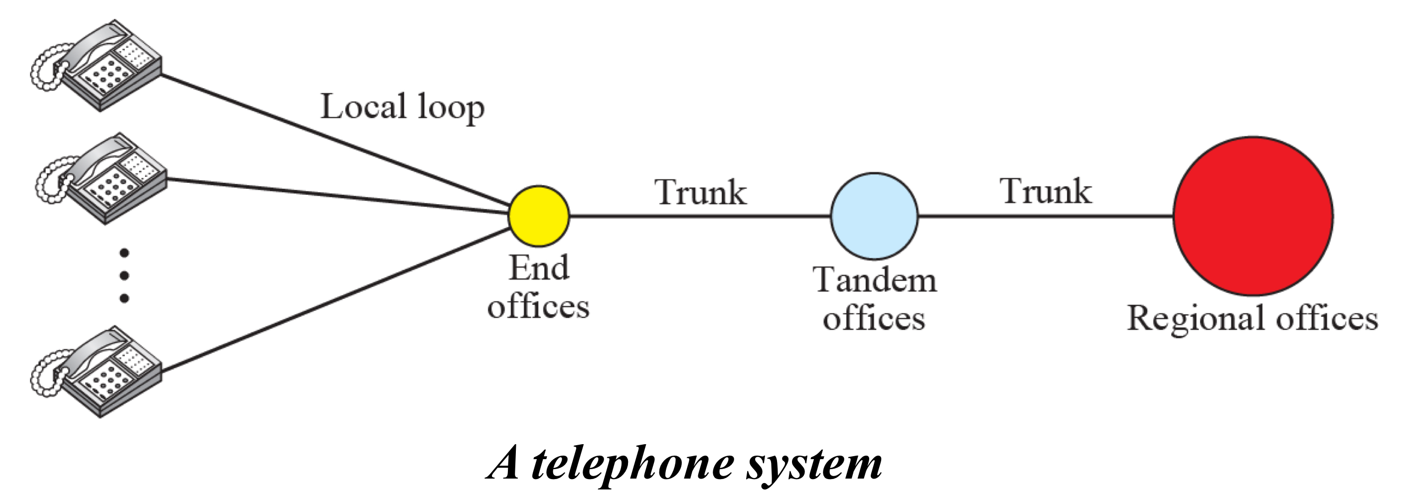 Telephone network는 end offices, tandem offices 그리고 regional offices와 같은 여러 단계의 switching offices가 있다.