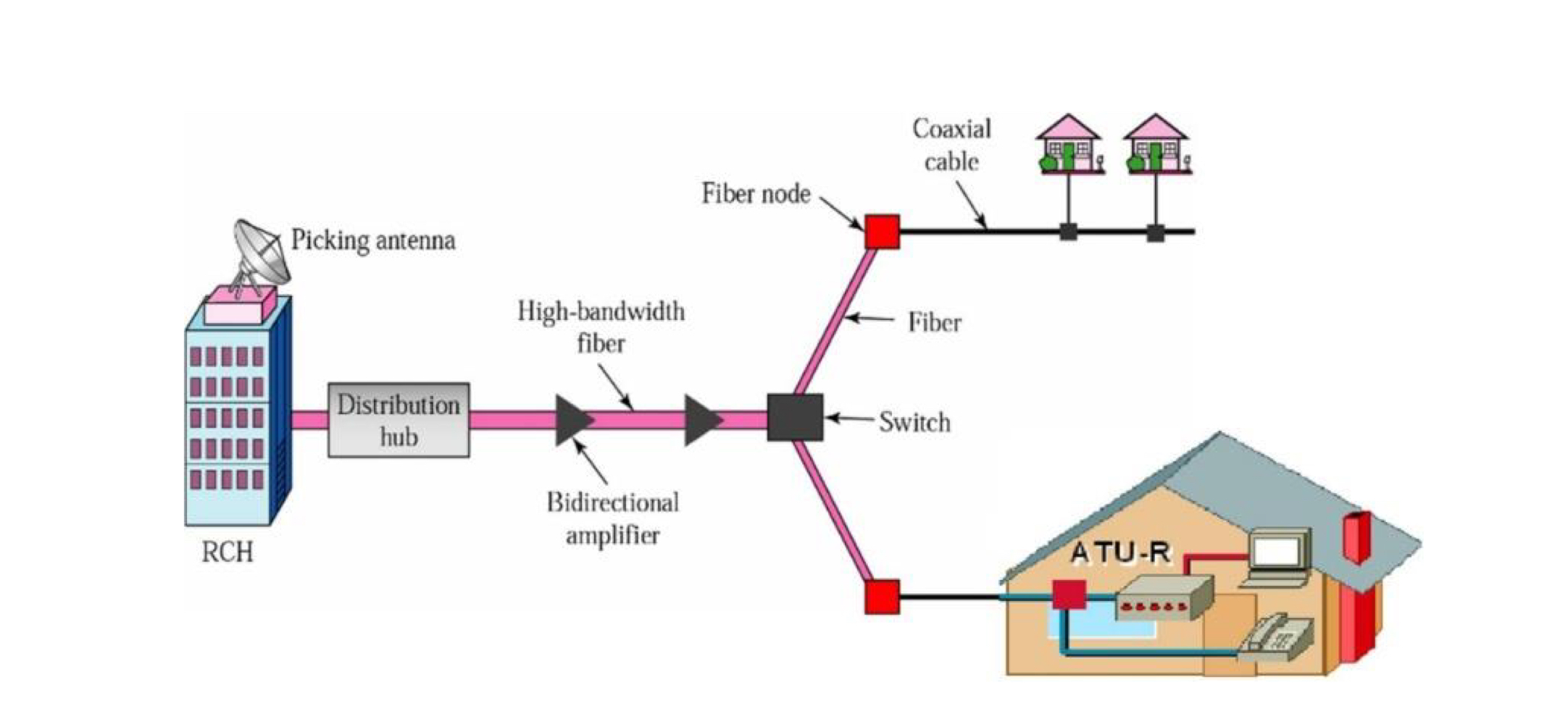 RCH에서 Switch까지 Coaxial cable이 아닌 High-bandwidth fiber을 사용한다.