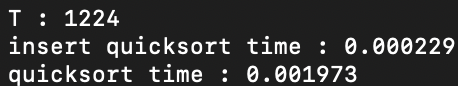 T는 변형된 quick정렬이 돌고난 후에 insertion sort가 반복문을 몇번 돌았는지 보여주고 있다.