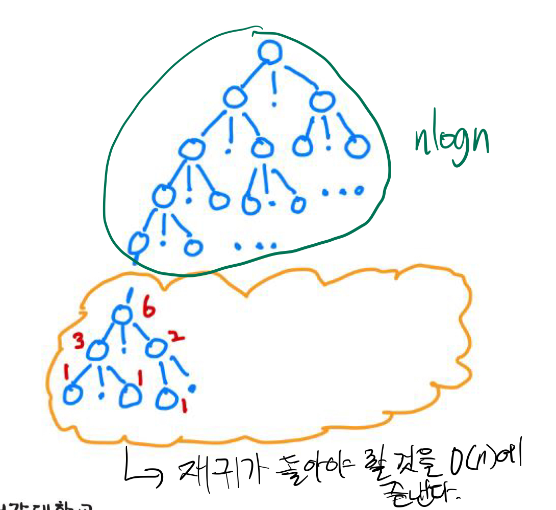 위와 같이 코드를 짜면 pivot으로 나누어진것 중에 작은 것을 먼저 선택하므로 tree의 최대 depth는 logN을 넘지않아 stackoverflow를 막을 수 있다.