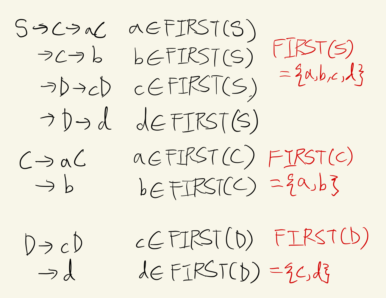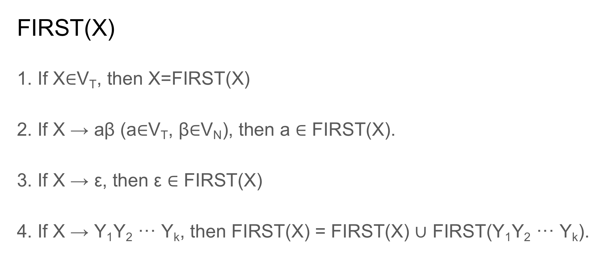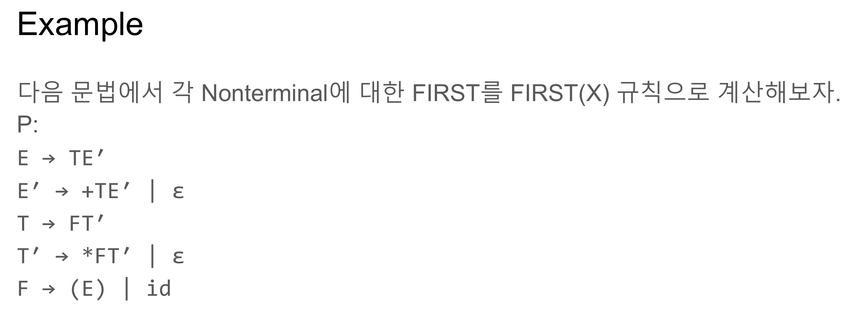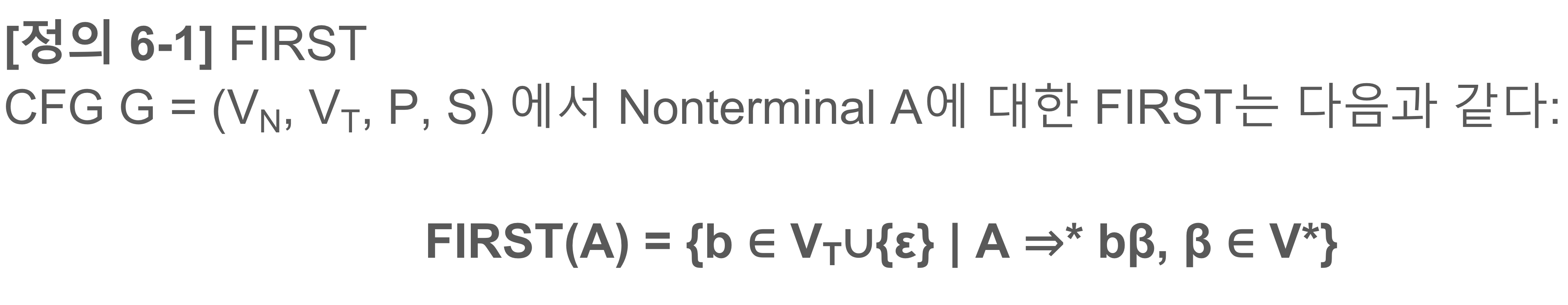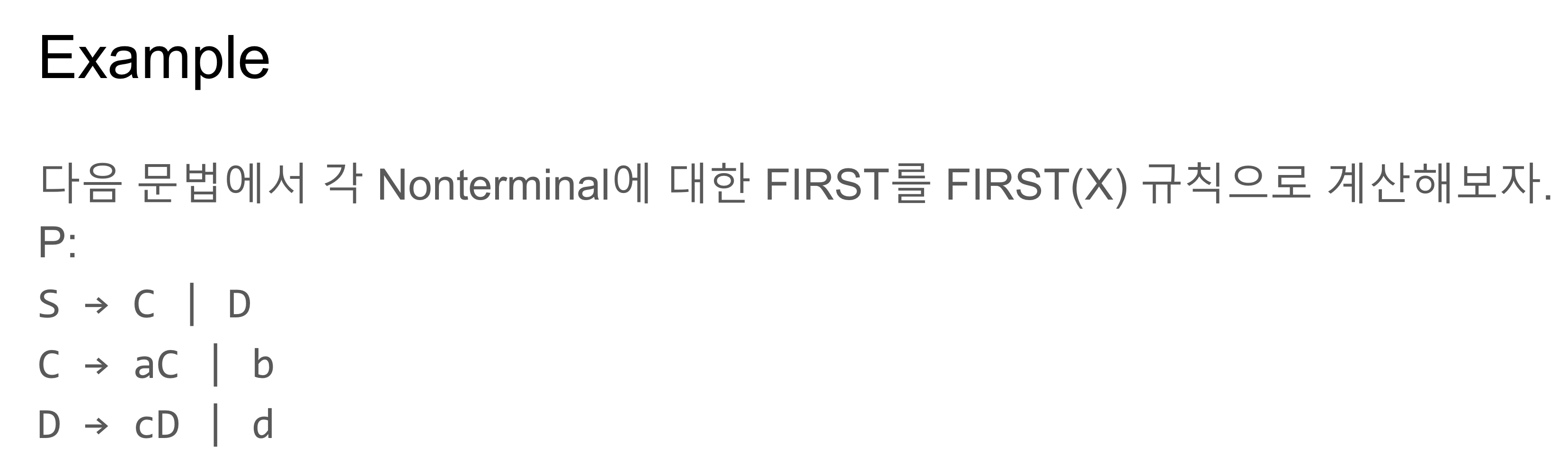 즉, Nonterminal A로부터 유도되어 첫 번째 나타나는 터미널 기호들의 집합이라고 할 수 있다.