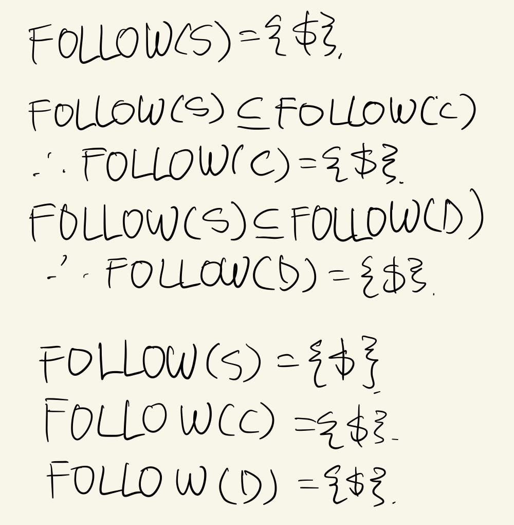 3. 만약 B->ɑA이거나 B->ɑAβ에서 β->*𝜀 이면 B의 FOLLOW 전체를 A의 FOLLOW에 첨가한다.