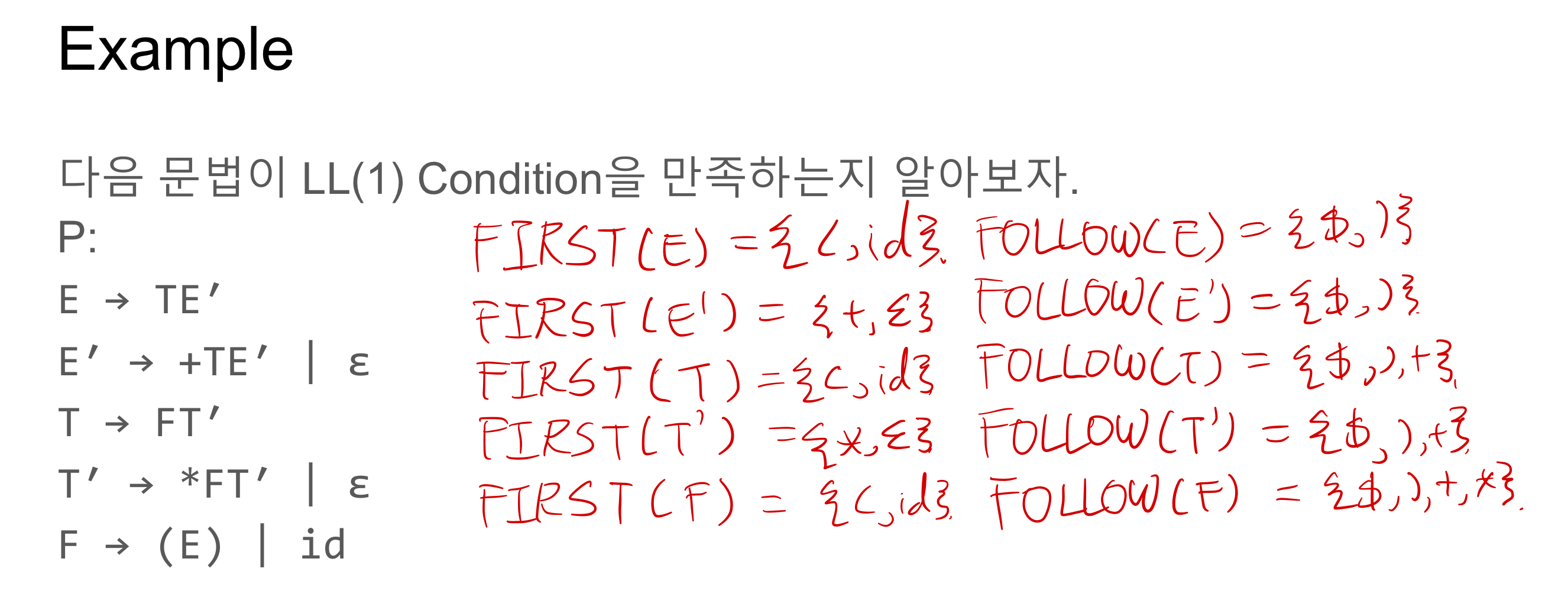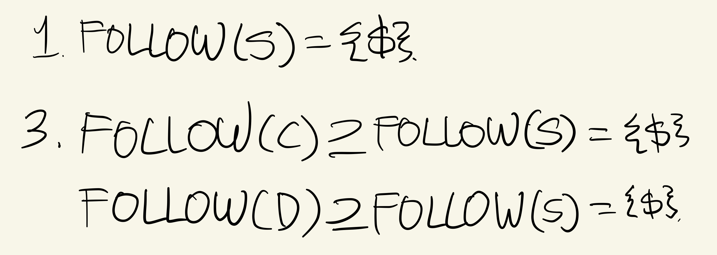 1. 만약 A가 시작 기호이면 $는 FOLLOW(A)에 속한다.