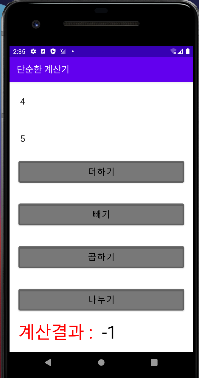 android:text="계산결과 :">