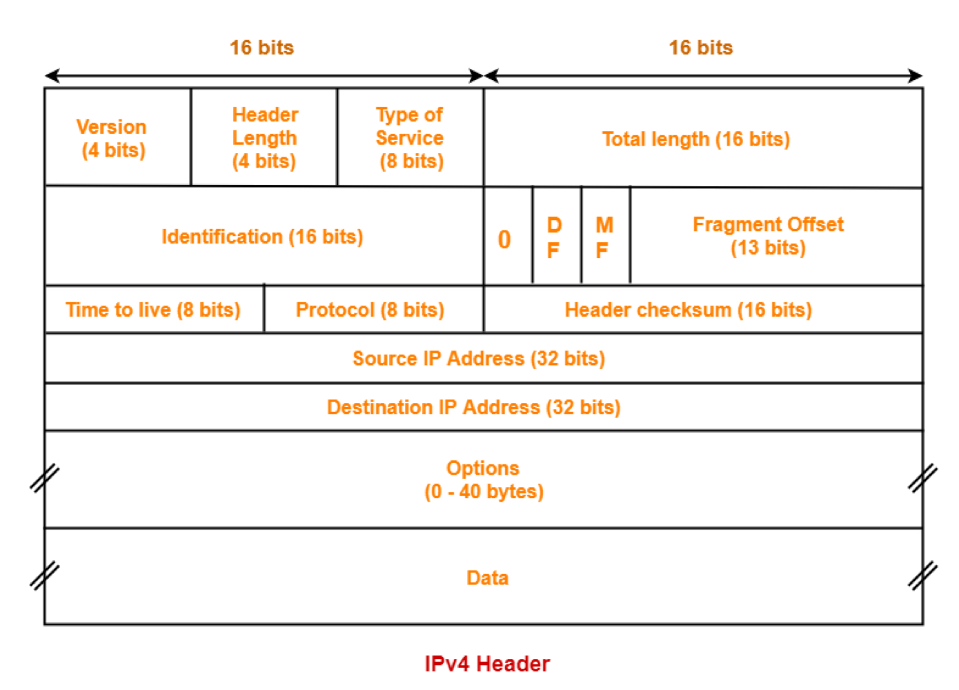 - IPv4 datagram의 header는 fixed part 그리고 variable part로 나뉜다.
