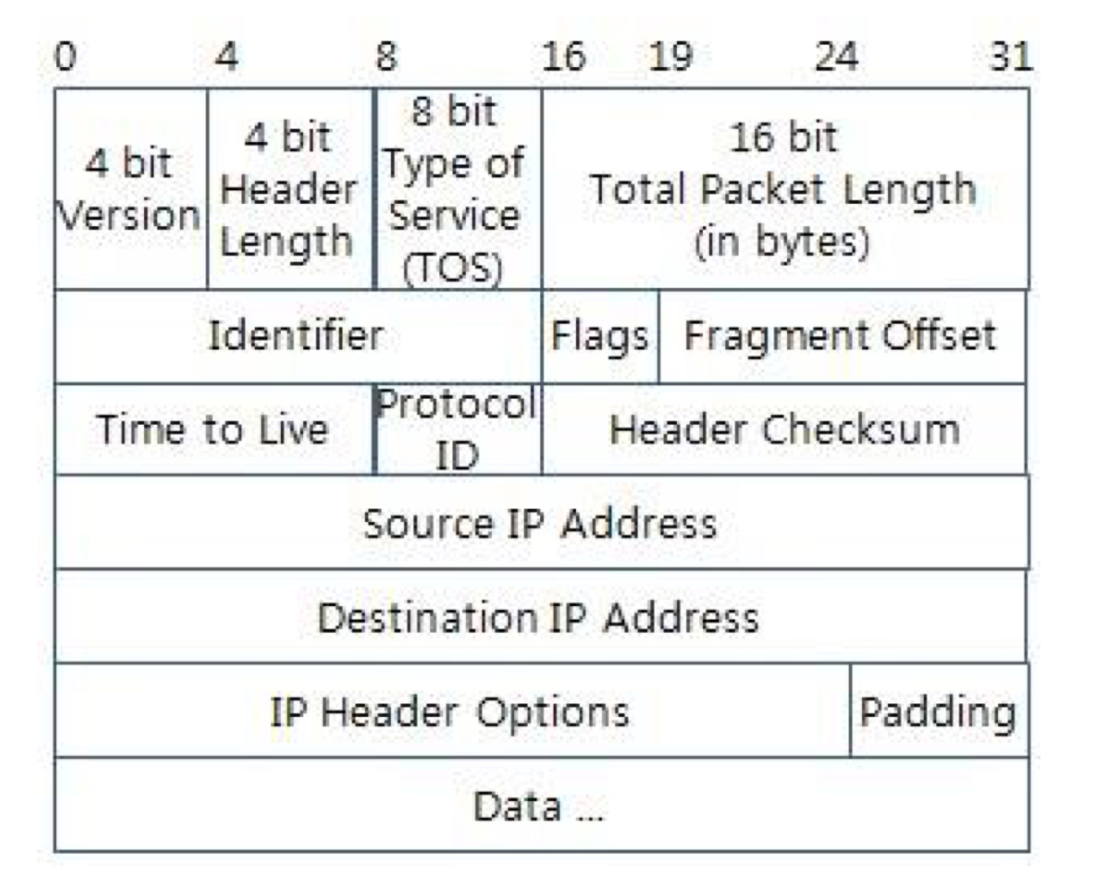 - Fixed part는 20byte이고, variable part는 옵션에 따라 다르지만 최대 40 byte(각각 4-byte)이다.