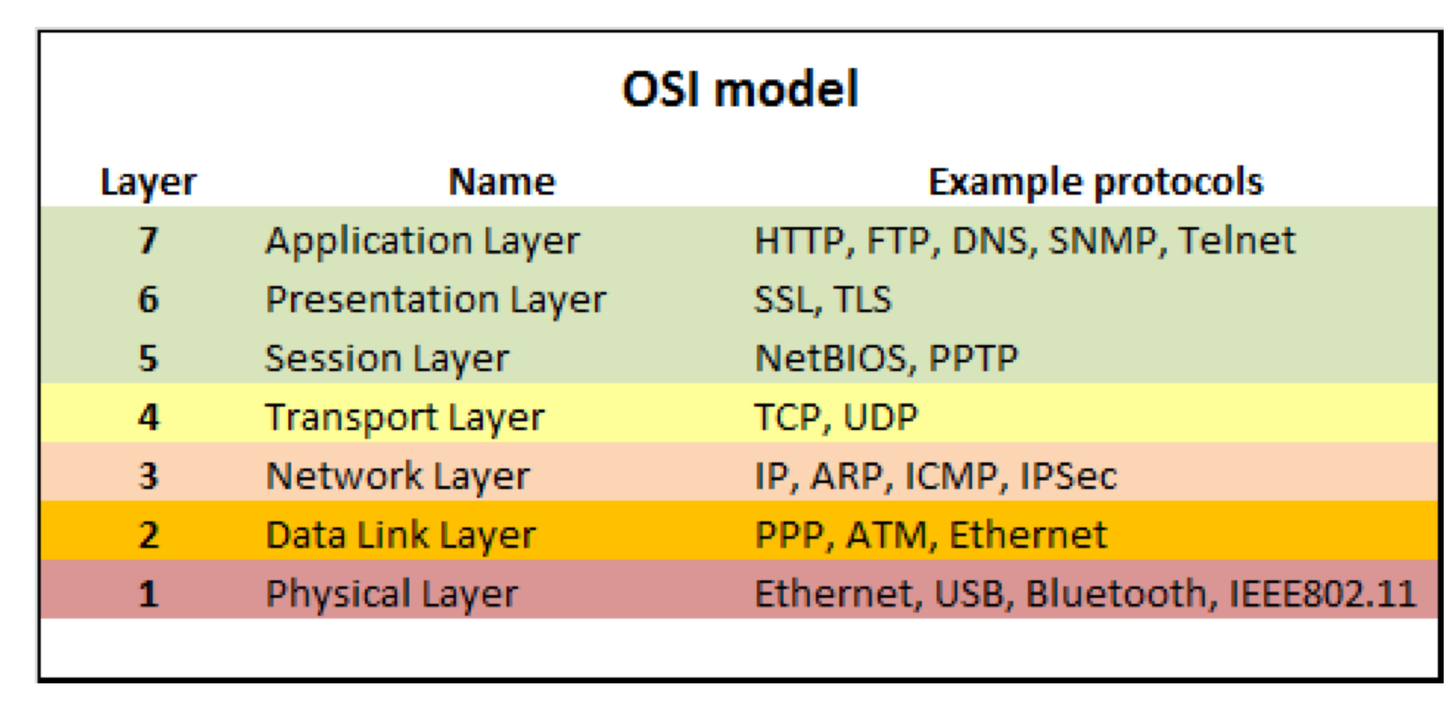 위는 각각의 layer마다 적용되는 protocol의 종류이다.(모두 외우기)