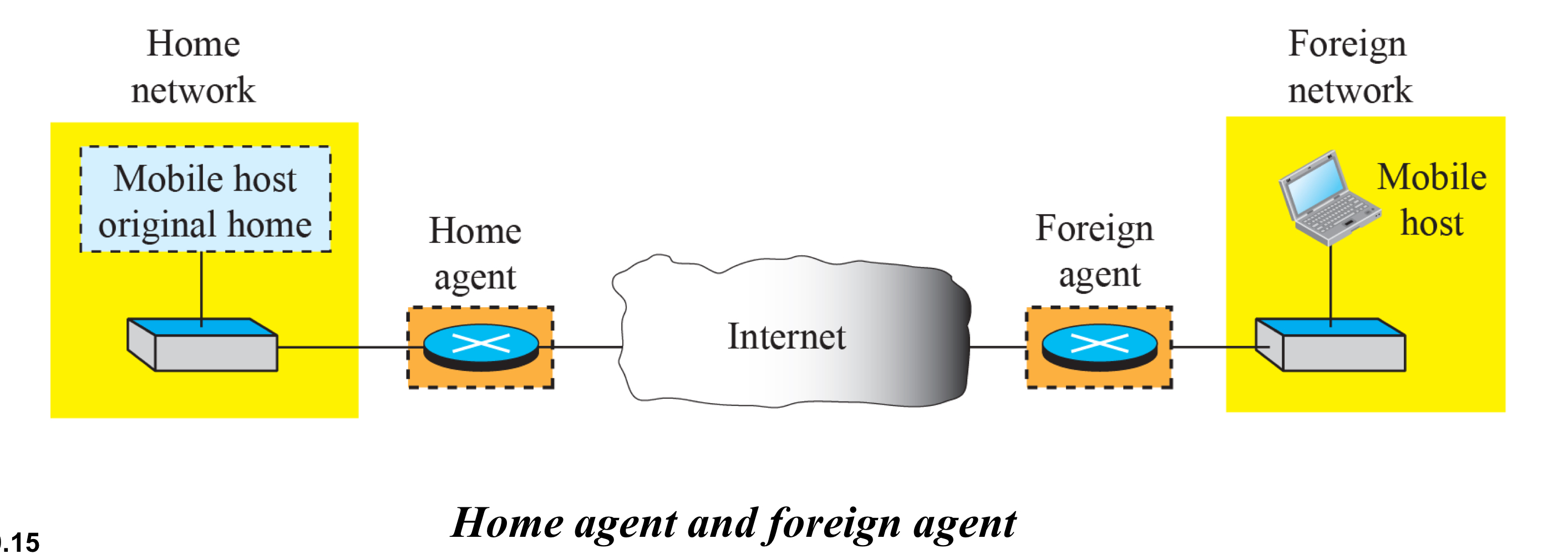 To make the change of address transparent to the reset of the Internet requires a home agent and a foreign agent: the position of a home agent relative to the home network and a foreign agent relatvie to the foreign network.