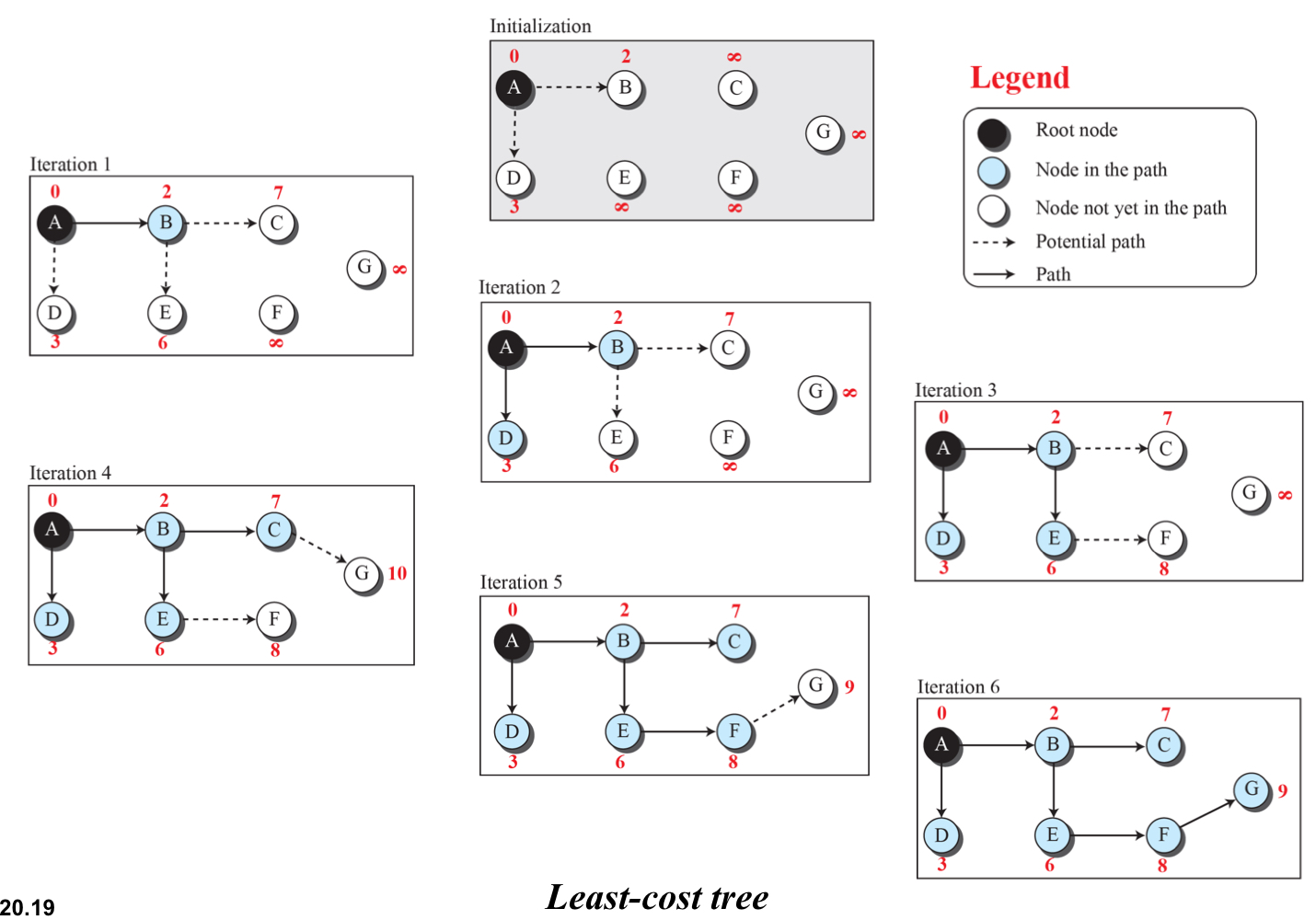 - creating leat-cost tree와 forwarding table을 만드는 routing algorithm은 link-state(LS) routing이다.