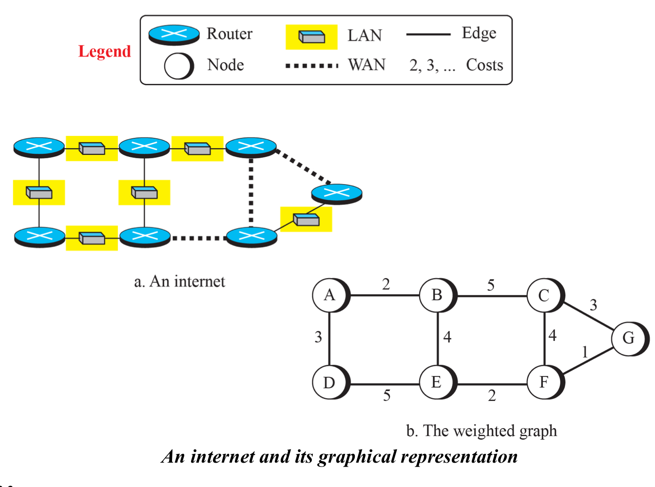 - Weighted graph로 internet이 model되었을 때, 당연히 가장 비용이 적게드는 path를 골라야한다.