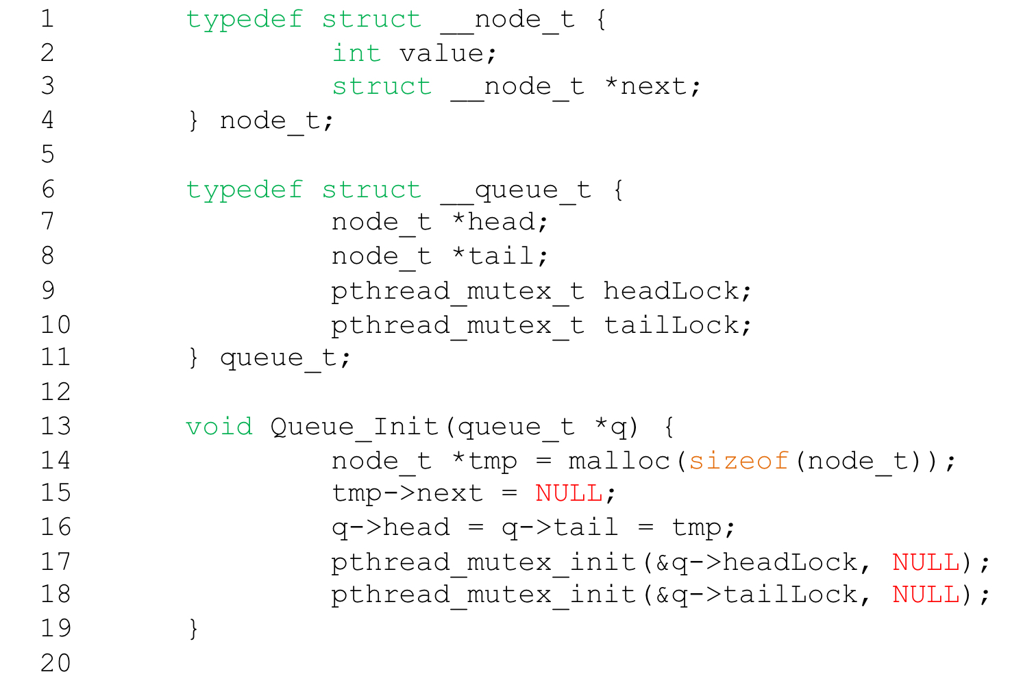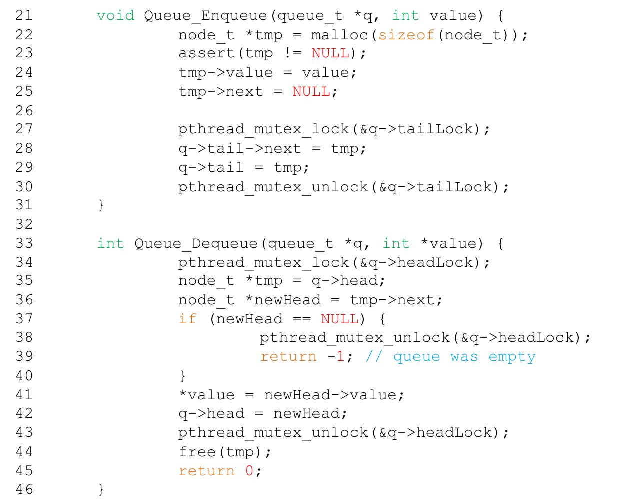 - The goal of these two locks is to enable concurrency of enqueue and dequeue operations.