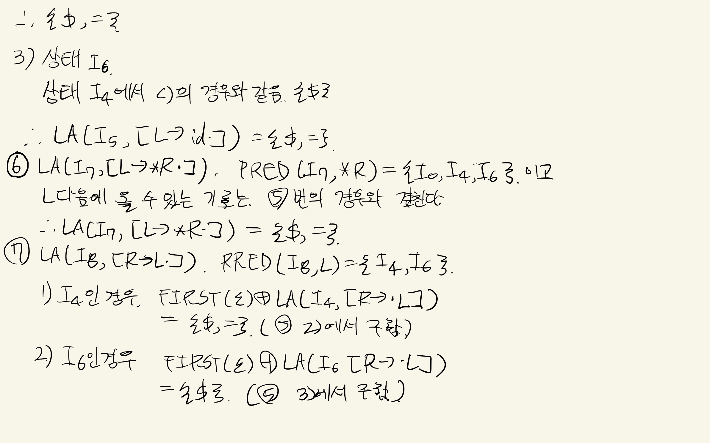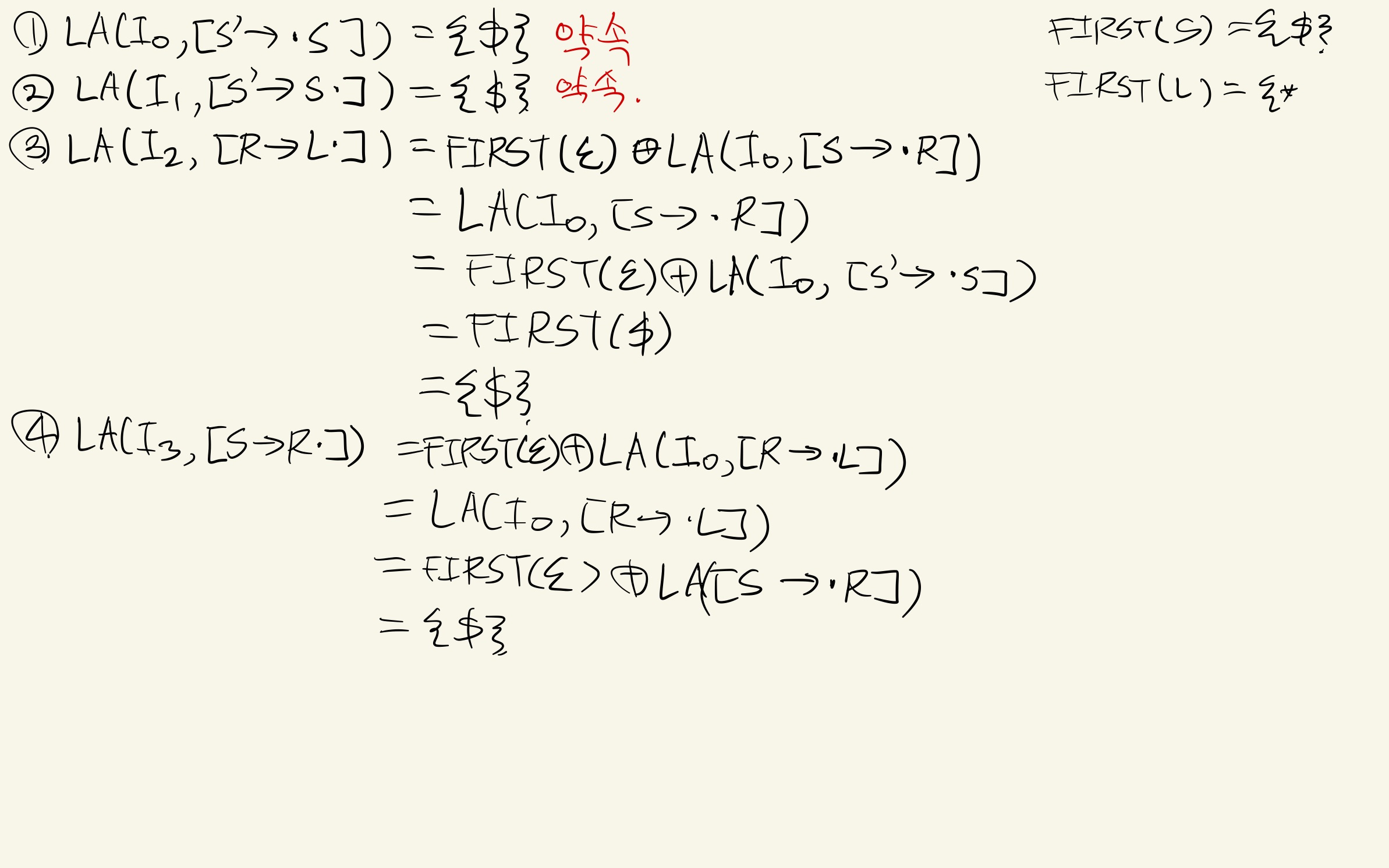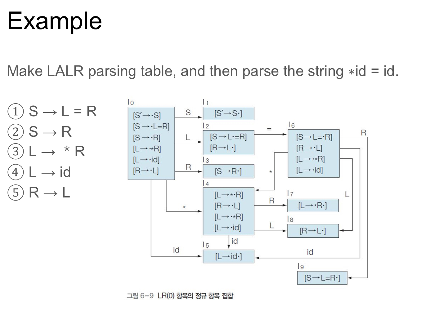 위를 바탕으로 LALR 파싱표를 만들어보자