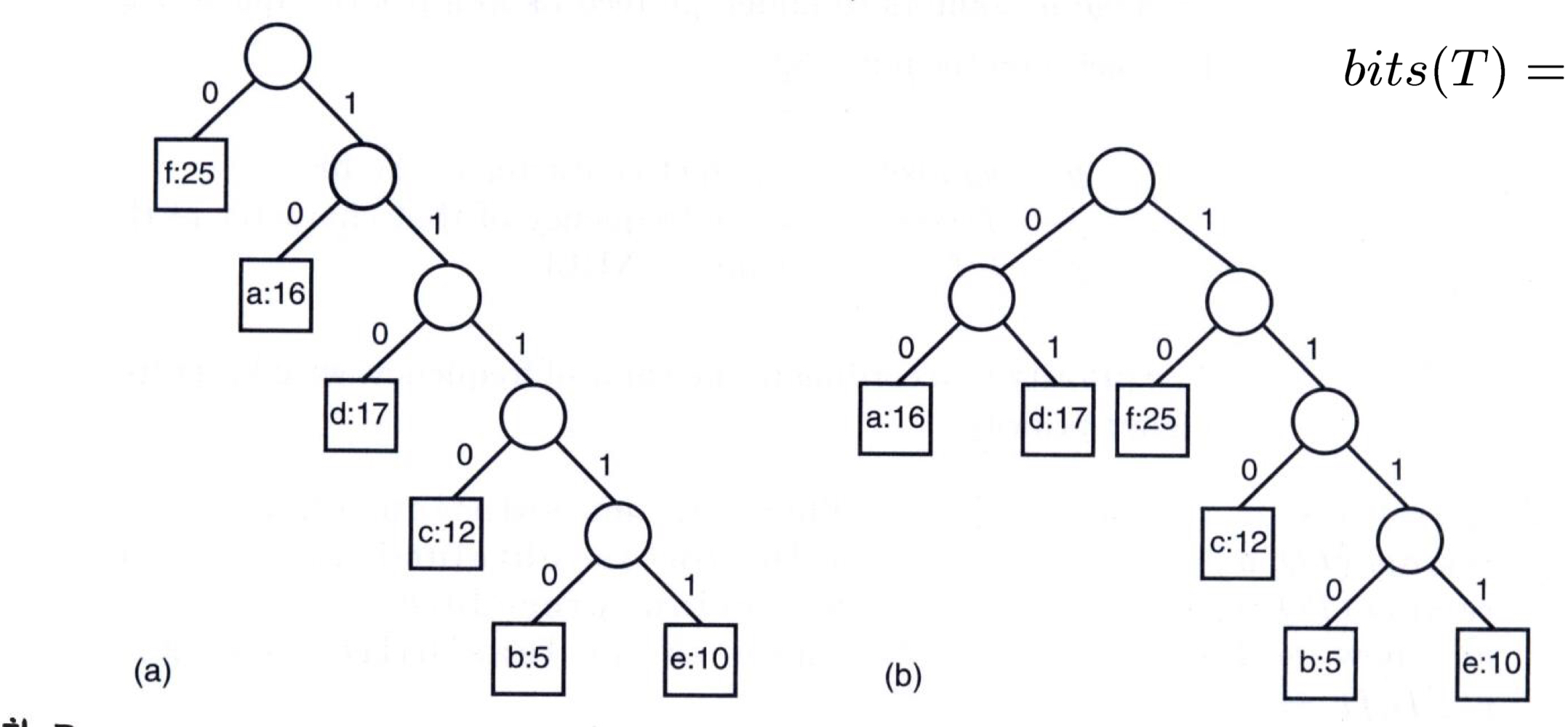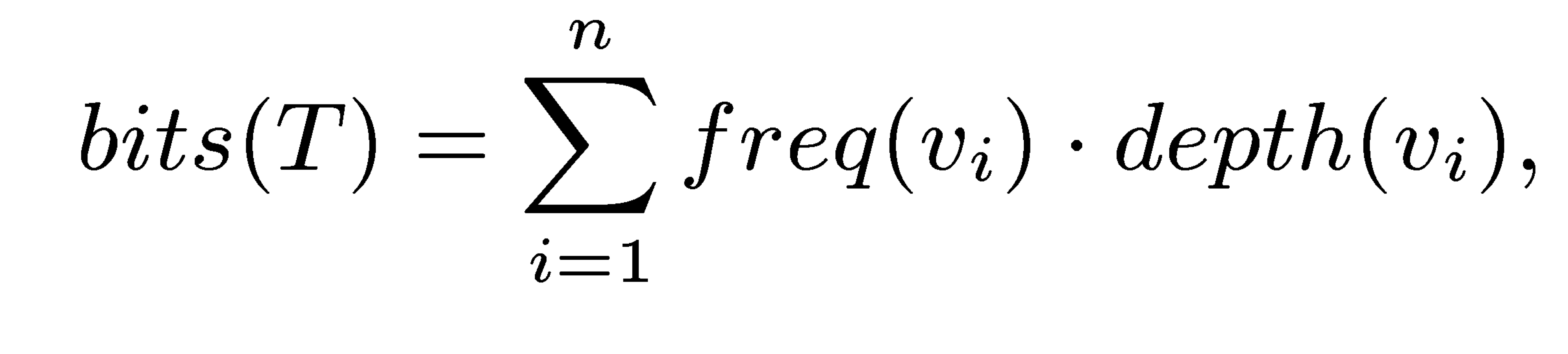 bit들이 주어지고 bit를 해석하는 binary tree가 주어졌을 때, 총 cost는 freq(vi)*depth(vi)가 된다.