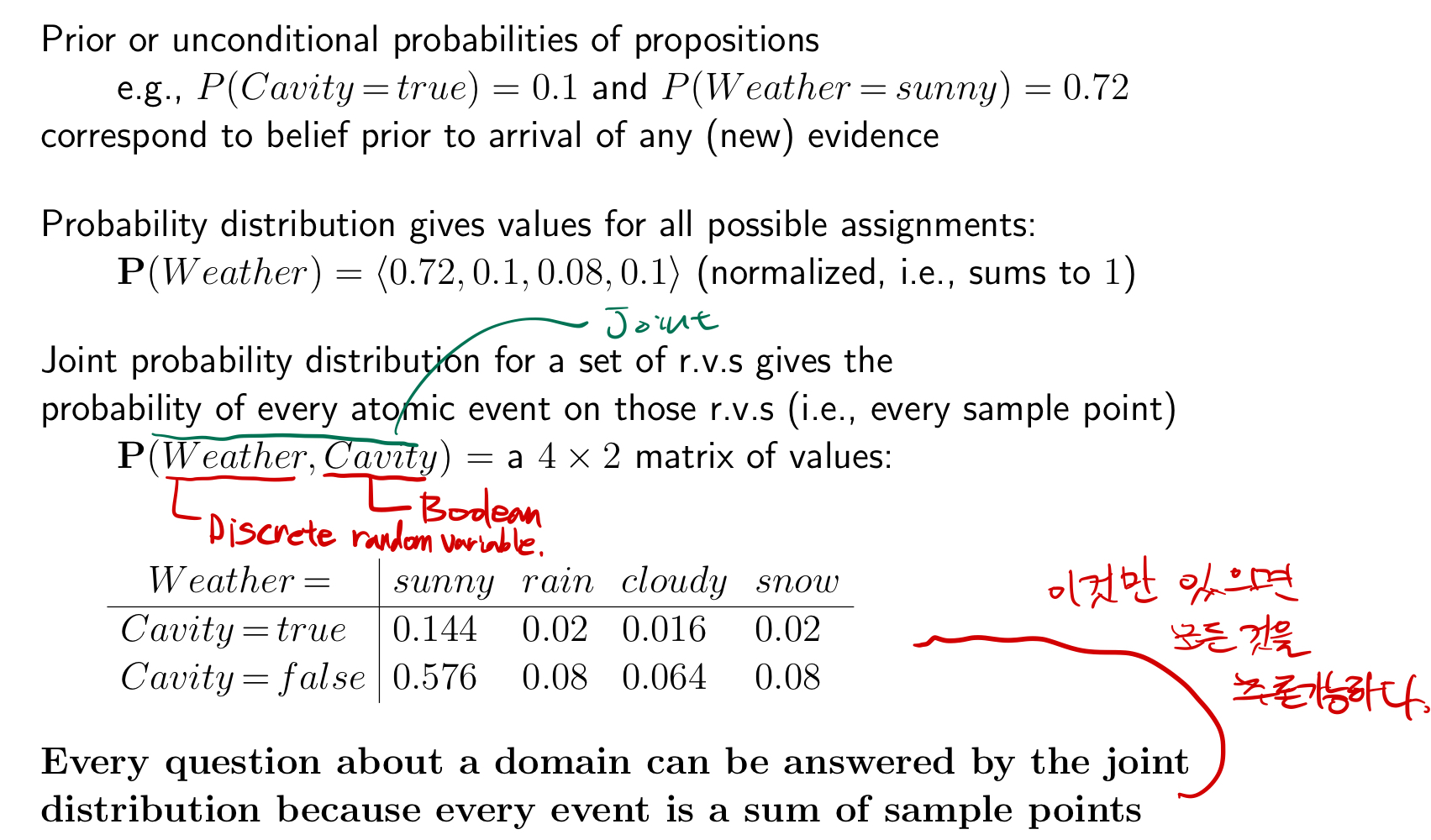 단 표가 full joint distribution이어야 한다.(KB와 같은 역할을 한다.)