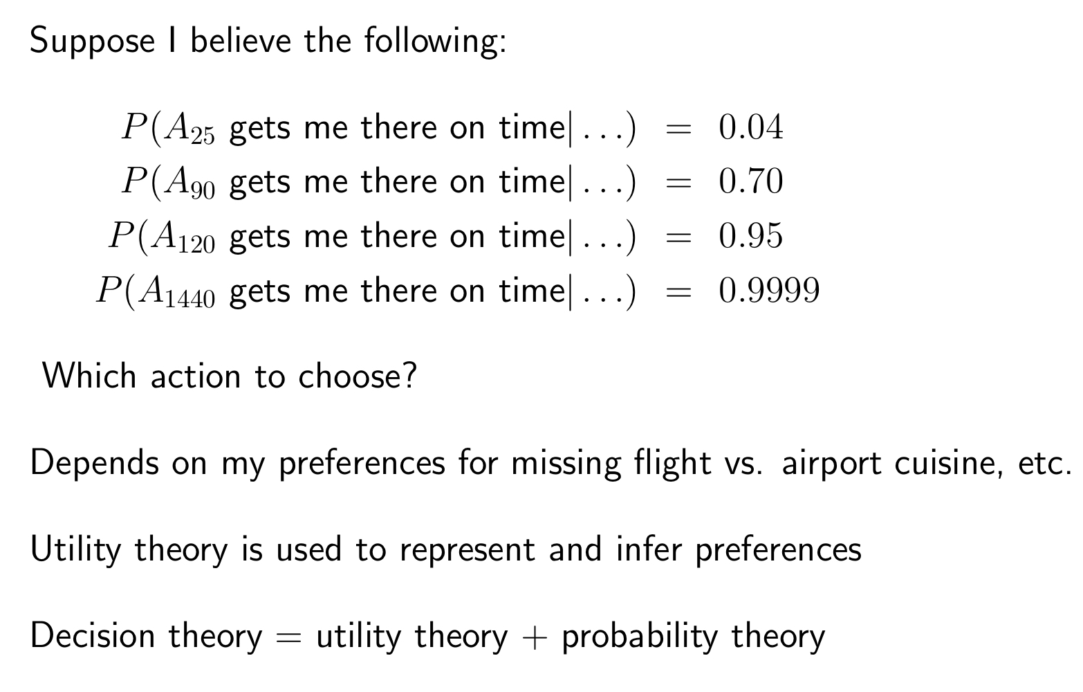 실제로 Decision theory = utility theory + probability theory로 정한다.