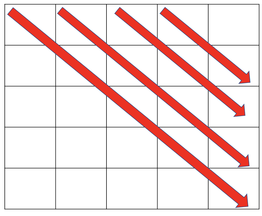 보통 반복문과는 다르게 행을 먼저 K-j만큼 반복문을 돌면 된다. 단, 참조하는 열의 값은 i+j로 두어야 한다.
