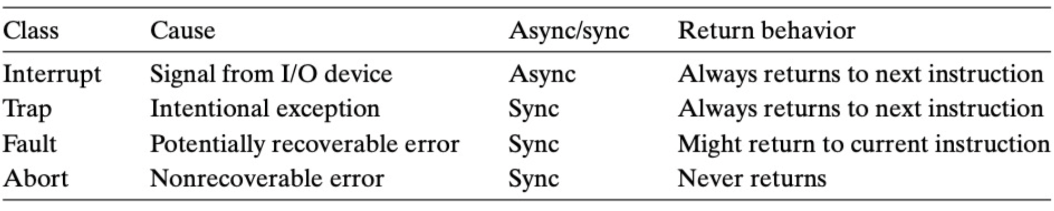 Exception은 Interrupt, Trap, Fault, Abort 4가지 class로 나뉜다.