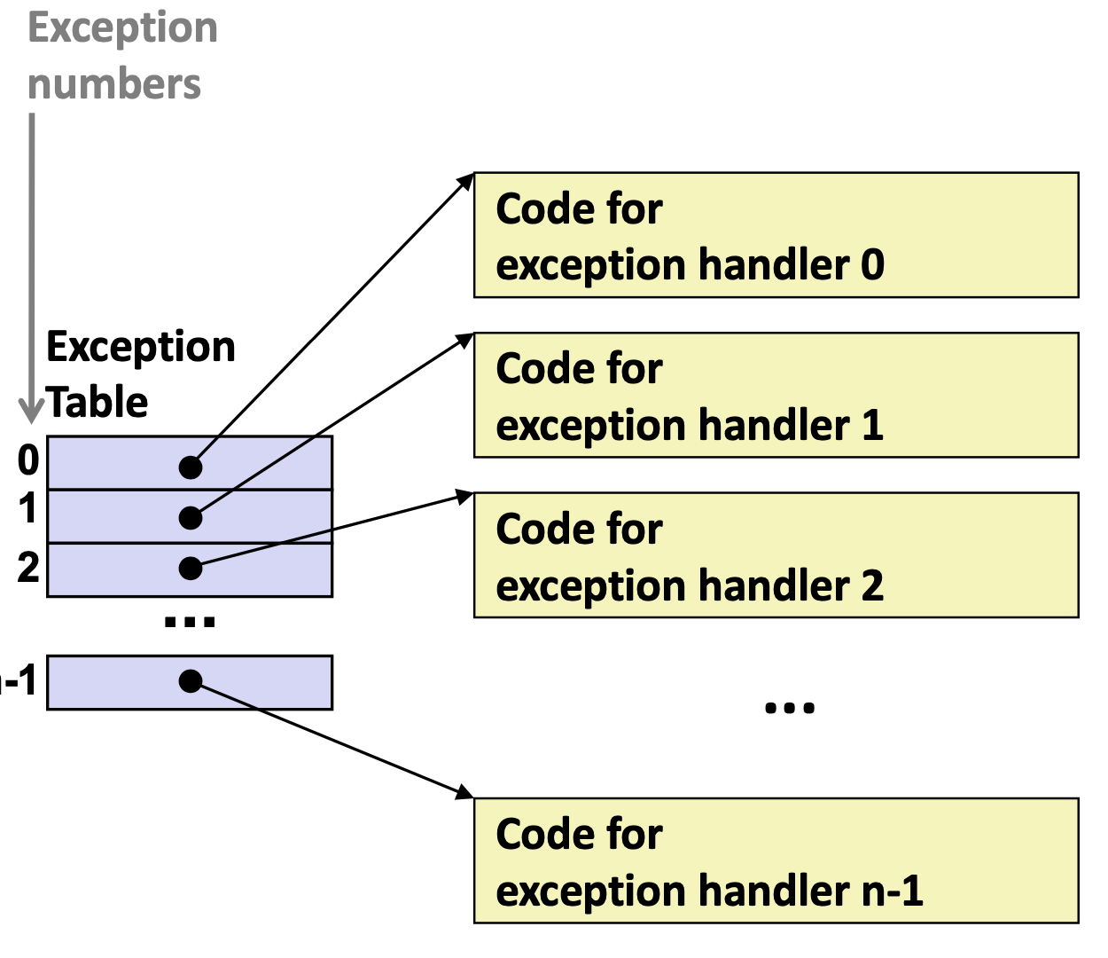각각의 상황에는 고유한 exception number가 부여되고 이를 정리하여 Exception table에 정리해 놓는다.