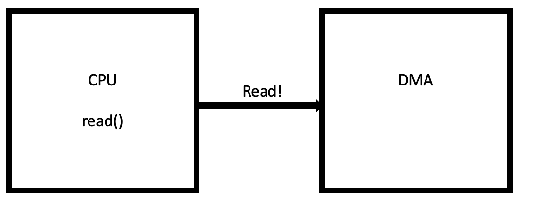 SSD에 접근하는 시간은 오래 걸리기 때문에 CPU는 DMA에 명령을 내리고 주소를 가져올 때까지 다른 instruction을 처리한다.