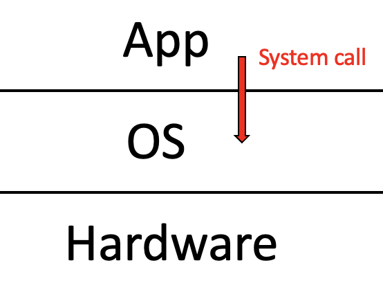 Application에서 Hardware에 접근하고 싶을 때 OS에 제어권을 넘겨줘야 하는데 이 때 발생시키는 것이 System call이다.