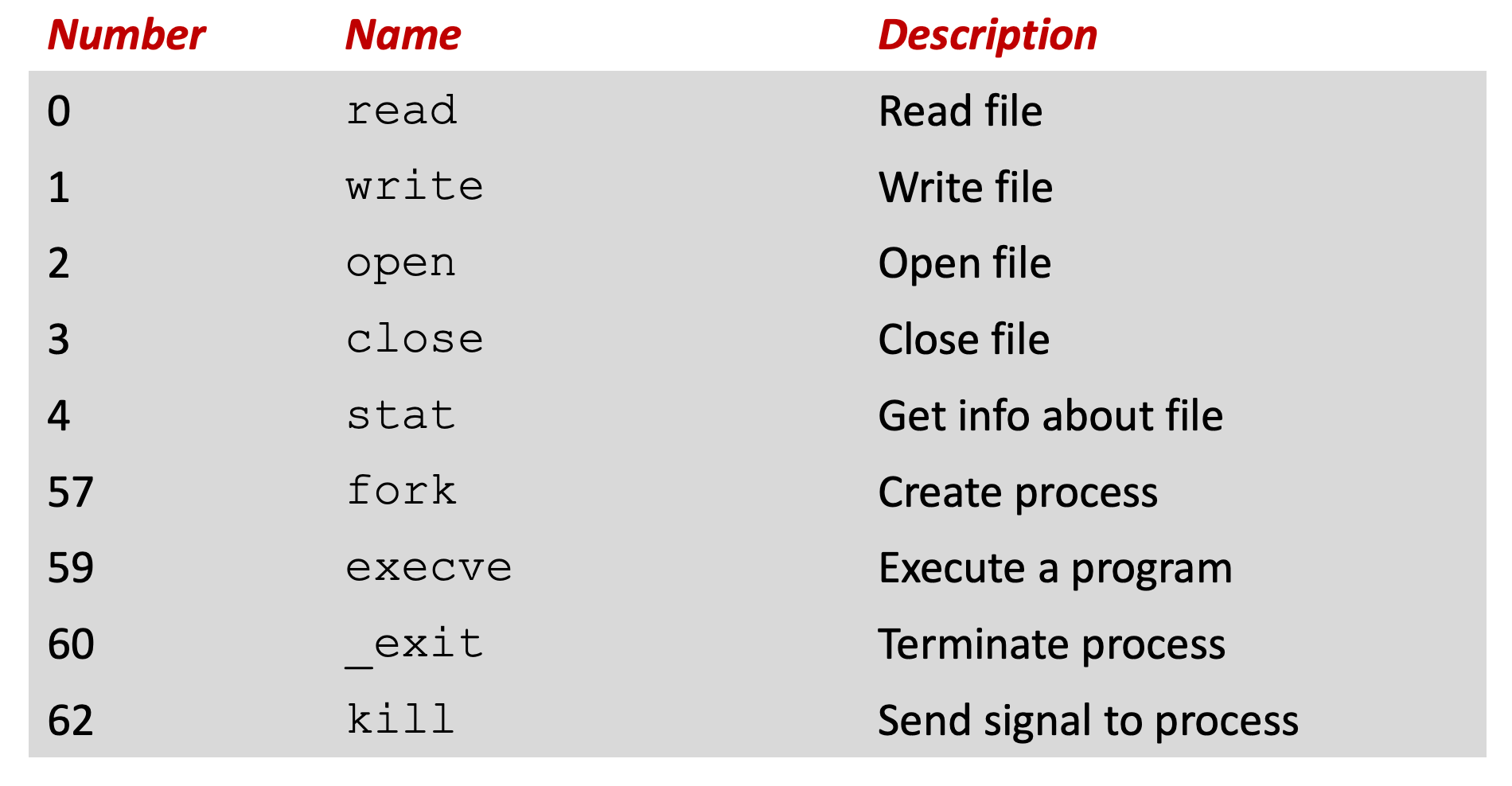 System call에는 여러가지 종류가 있고 OS는 System call 종류에 맞게 일을 수행한다.