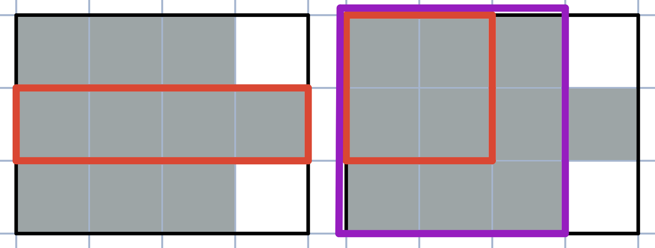 - A subrectangle A is contained in a subrectangle B if there's no cell contained in A but not contained in B.