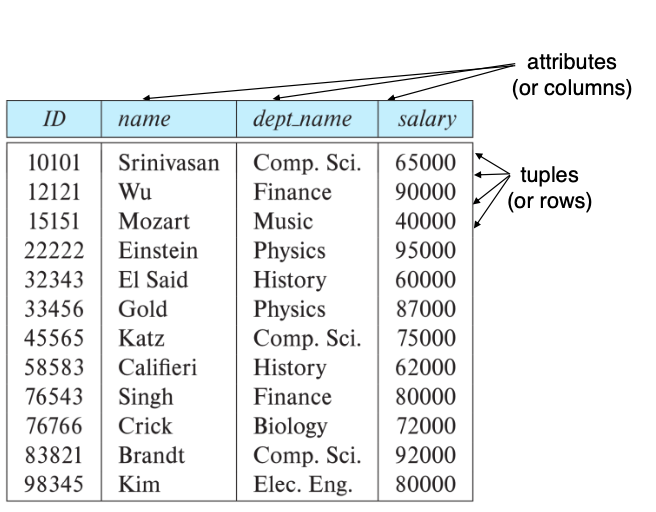 Relation를 구성하는 tuple은 정렬되어있지 않다