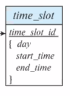 time slot (time slot id, day, start time, endtime) 으로 나타내면 된다.