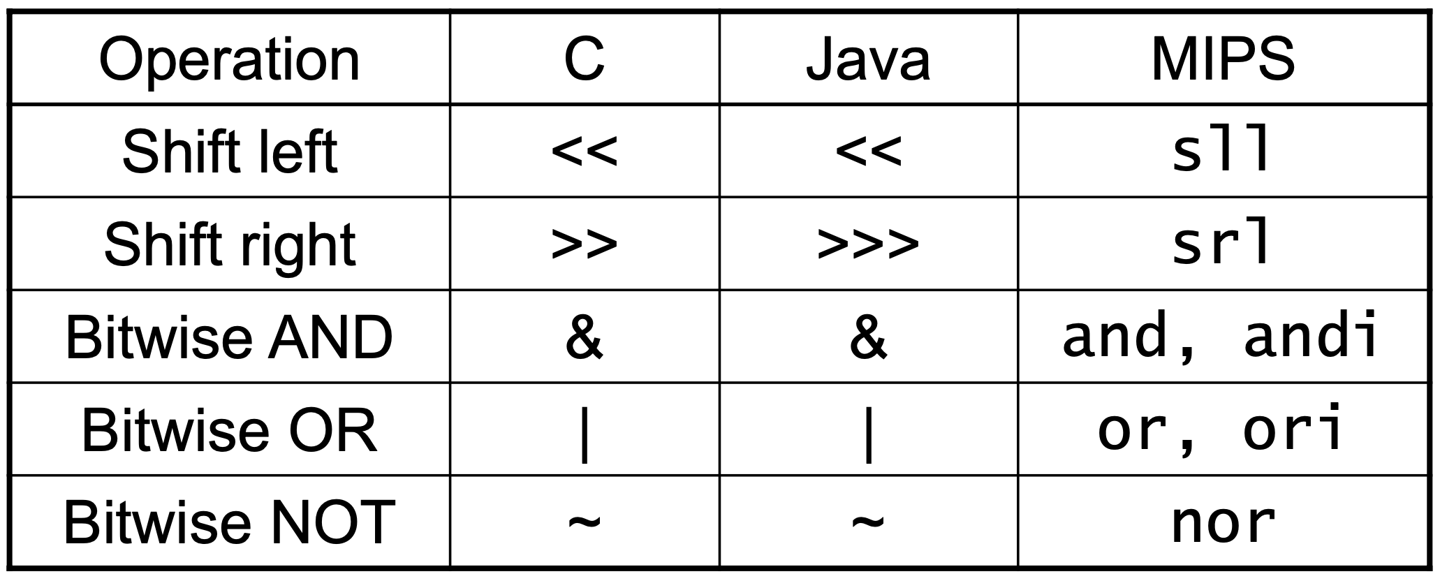 MIPS에서도 Logical operation을 지원한다.