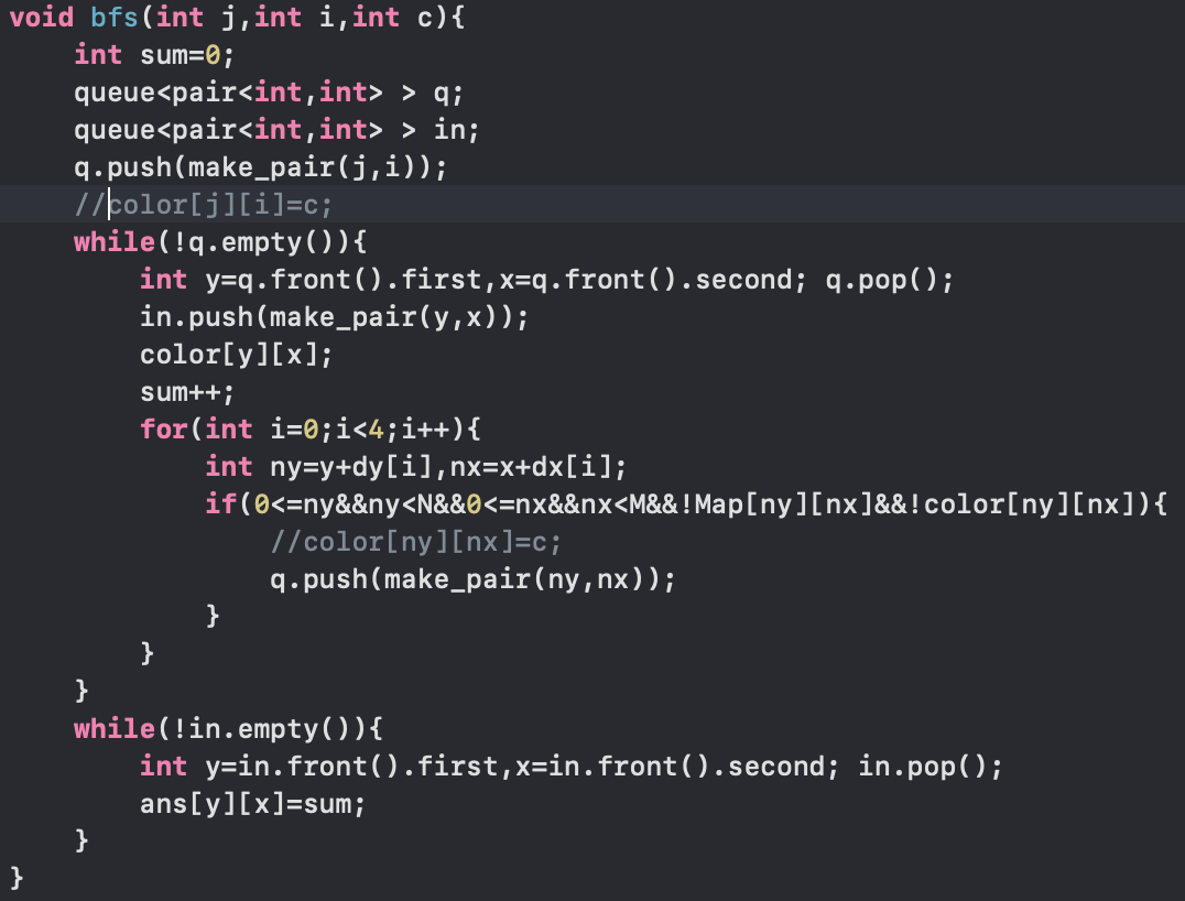if(0<=ny&&ny<N&&0<=nx&&nx<M&&!Map[ny][nx]&&!m[color[ny][nx]]){