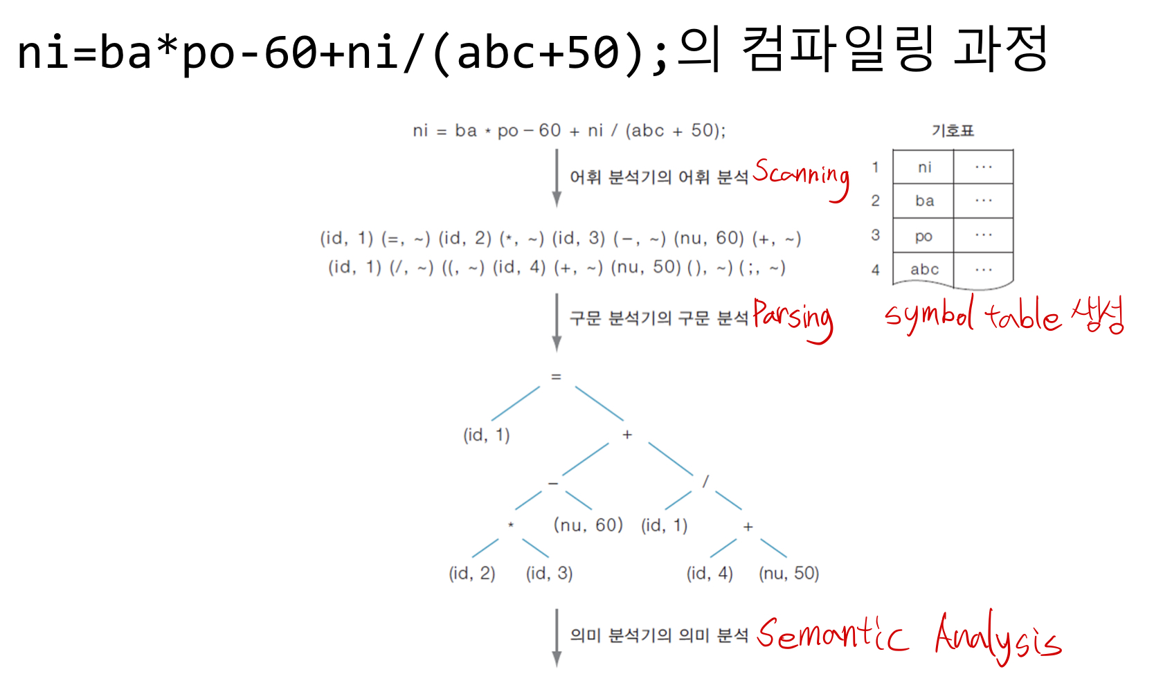 컴파일러는 위와 같은 순서로 돌아간다.