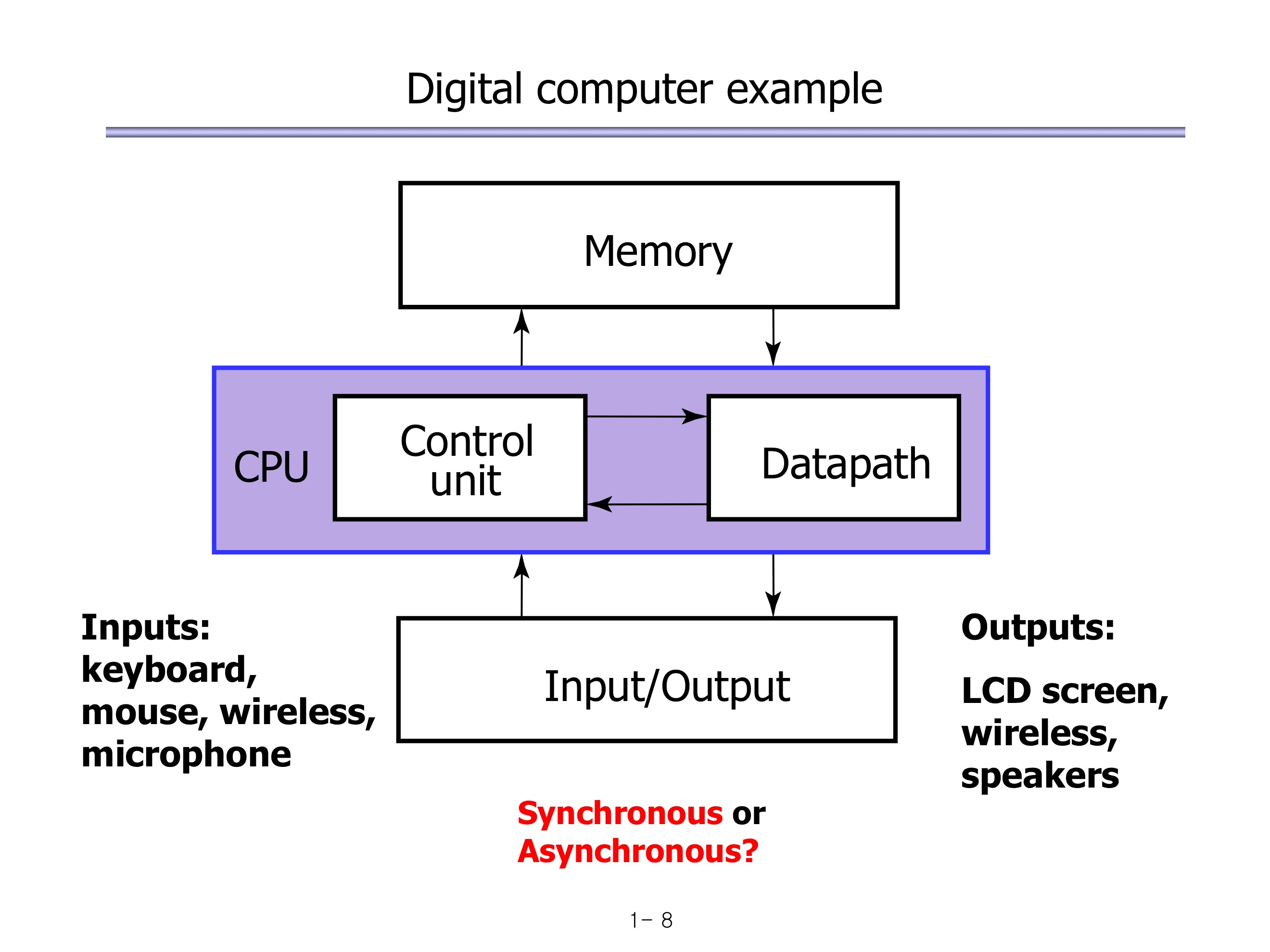 위에 시스템은 CPU가 있으므로 Synchronous 하다고 볼 수 있다.(현존하는 거의 모든 CPU에는 clock이 내재되어 있다.)